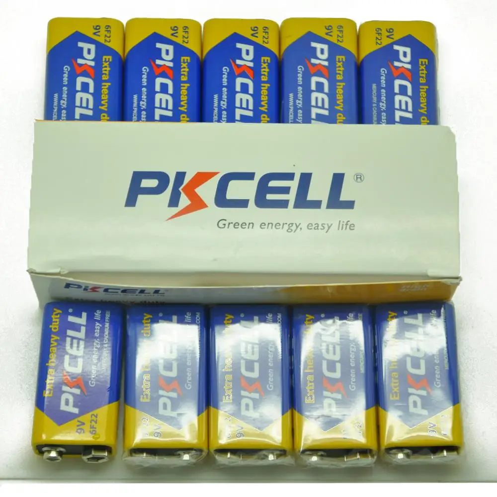 10 шт., сверхмощные батарейки PKCELL 9 В 6F22, сухая батарея для часов, автомобиля, электронный термометр, микрофоны