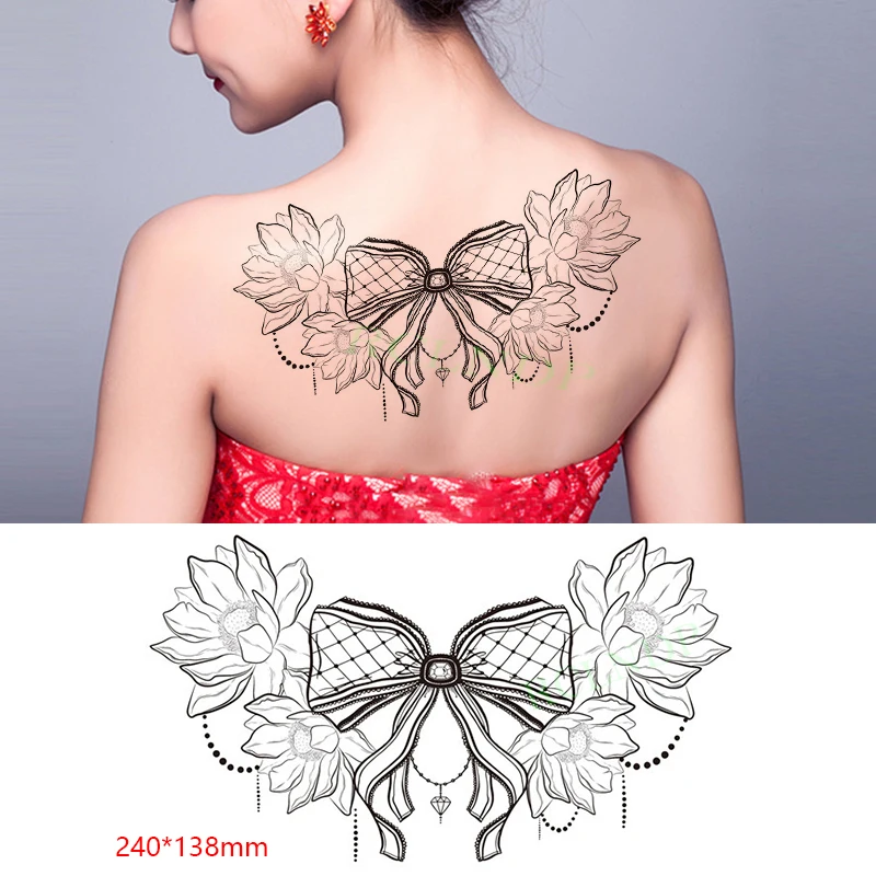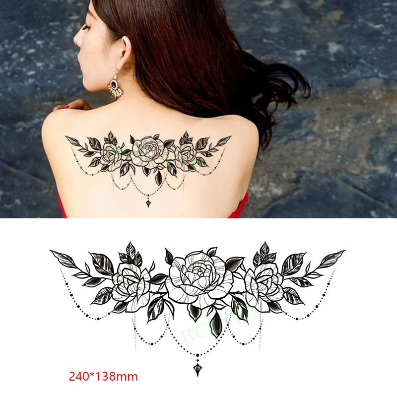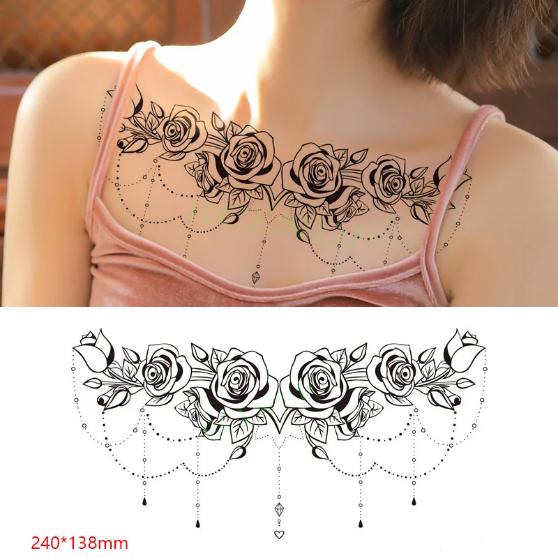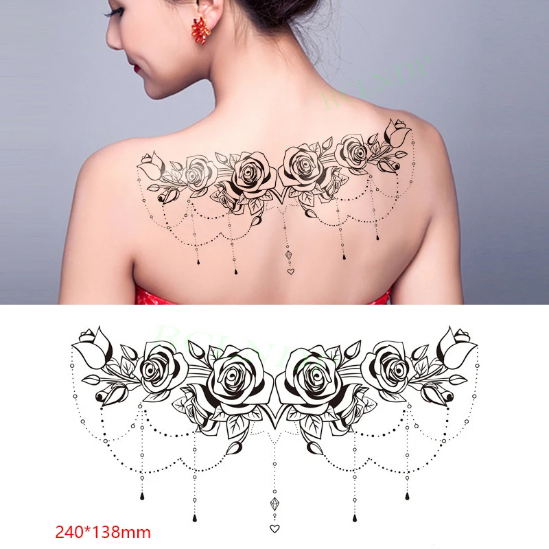 Водостойкая Временная тату-наклейка, цветок, роза, ожерелье, элемент на спине, тату для груди, флэш-тату, искусственная татуировка для женщин