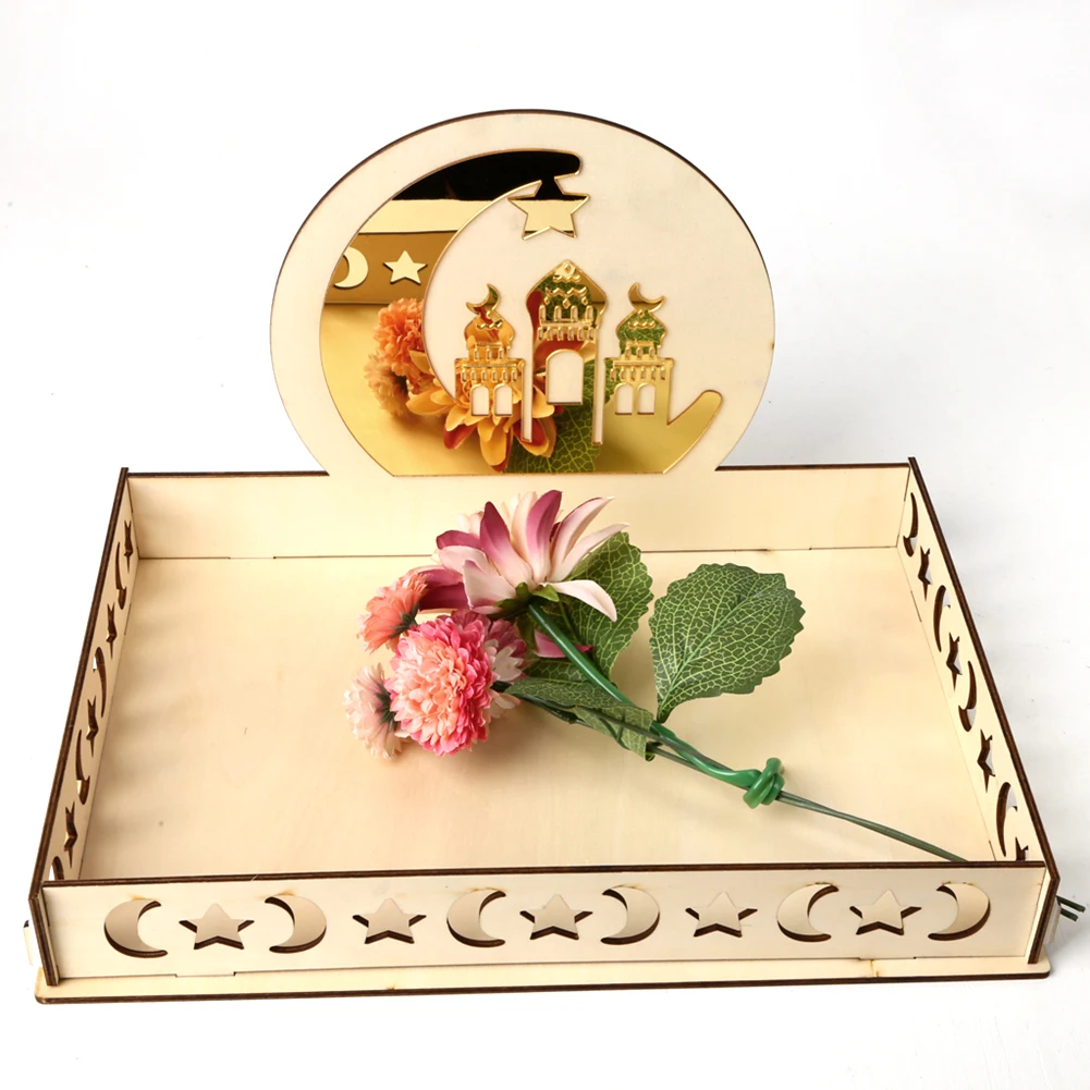 Eid украшение Мубарак деревянный Рамадан Kareem еда десертный лоток...