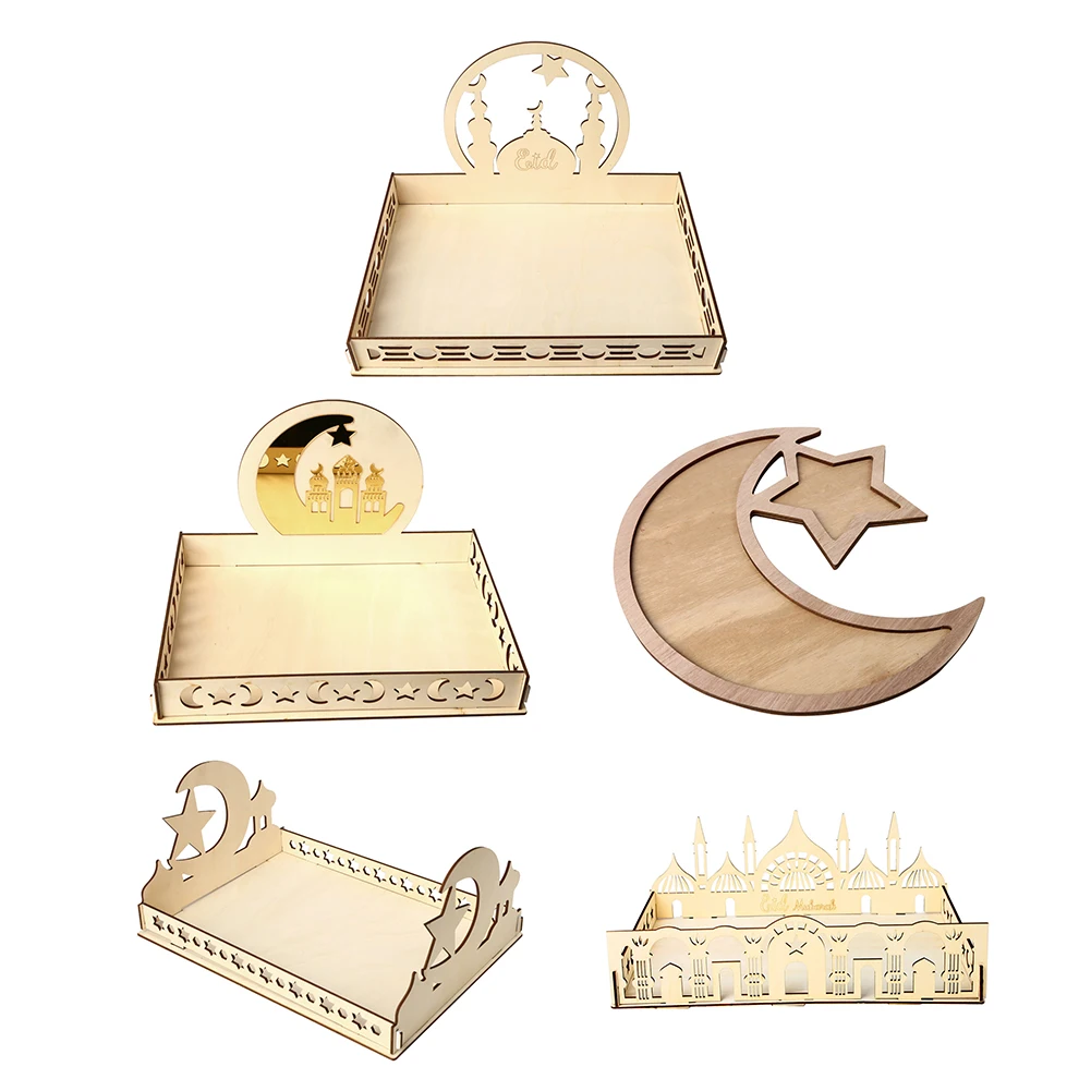 ИД украшение Мубарак деревянные украшения на Рамадан Карим Еда лоток исламский мусульманский подарки 2021 помощи Мубарак подарки