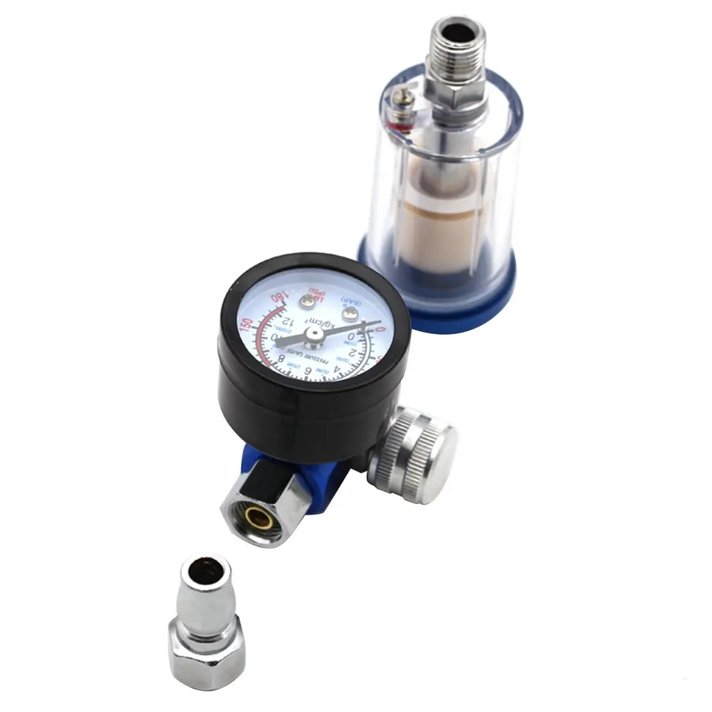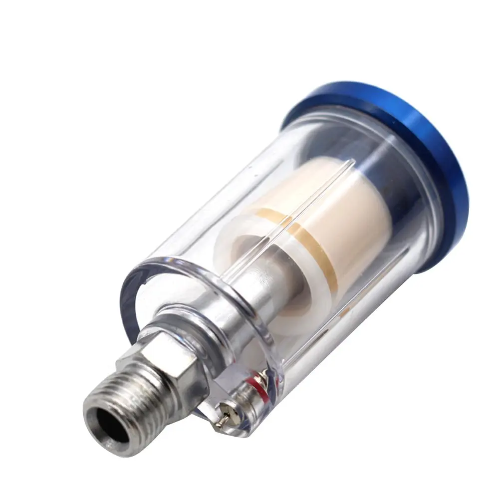 1. Стандартная Резьба 1/4 подойдет для большинства пульверизаторов и авиалиний.2. Это компактный фильтр для использования с воздушными и распылительными пушками.3. Фильтрует воздушные Твердые загрязнители, такие как трубы масштаба, ржавчины, конденсации от авиалиний.4. Он помещается в вашу авиакомпанию или непосредственно на распылитель, чтобы предотвратить загрязнение воды лакокрасочным покрытием.5. Прозрачная фильтровальная чаша позволяет визуально проверить встроенную влагу и удаляется через пружинный клапан в нижней части.Описание: