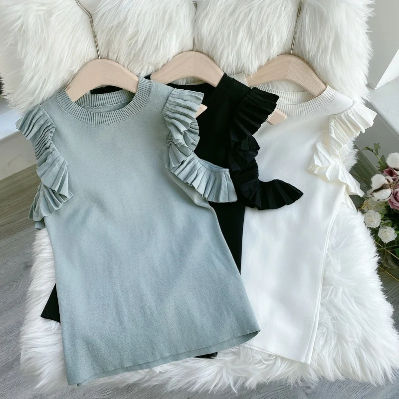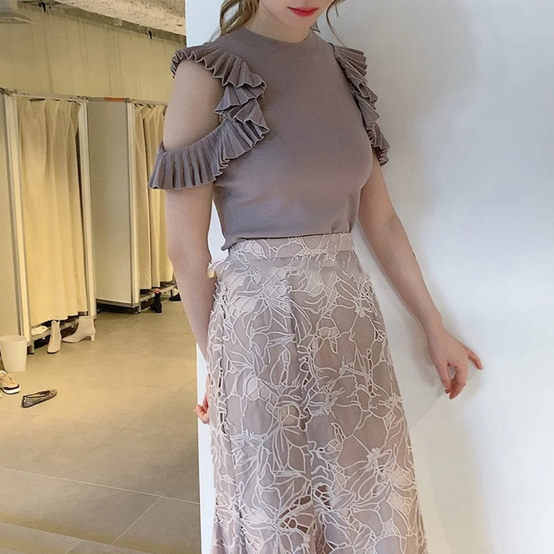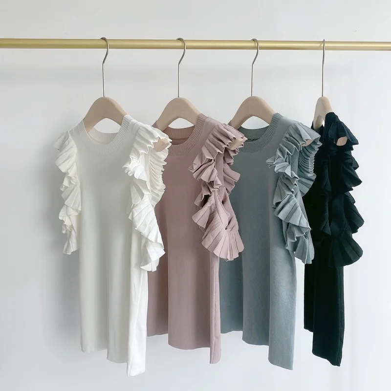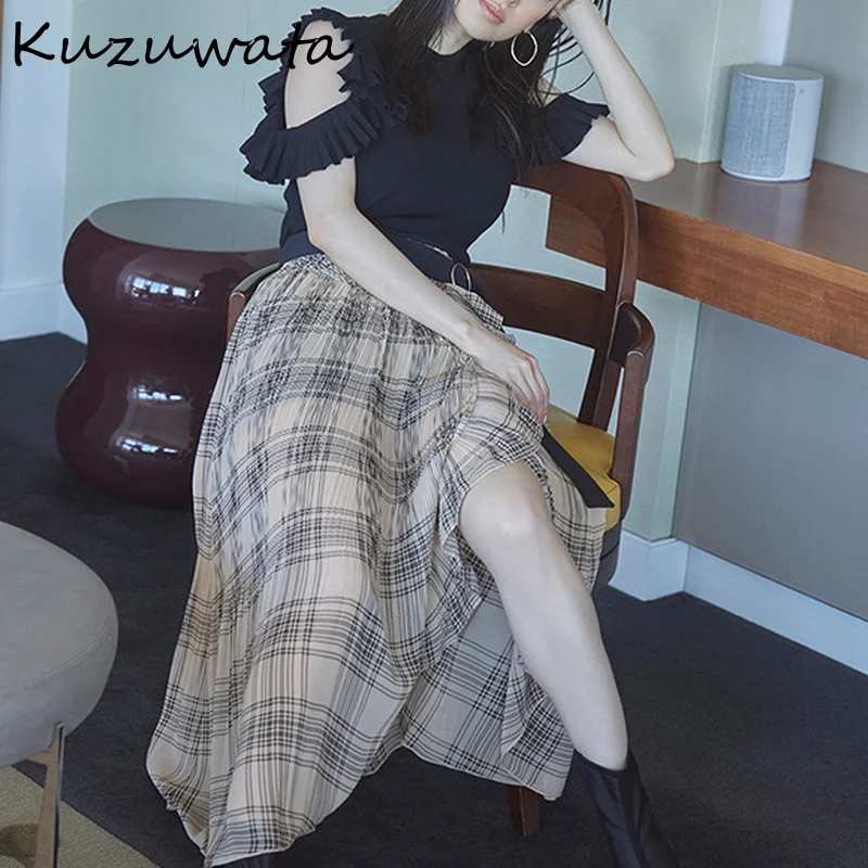 Японские милые рубашки Kuzuwata, вязаные Однотонные блузки с открытыми плечами и складками, темпераментные женские топы на весну и осень 2022