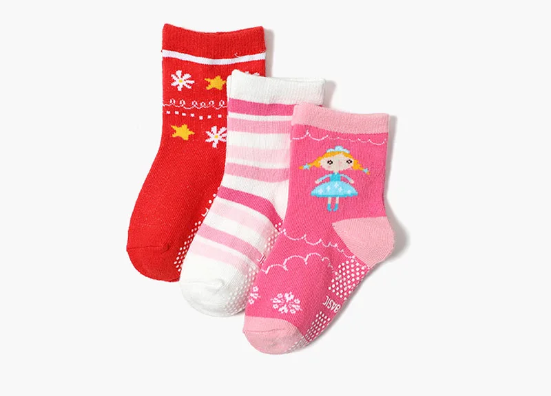 6 пар в партии, хлопковые носочки для девочки резиновые противоскол...