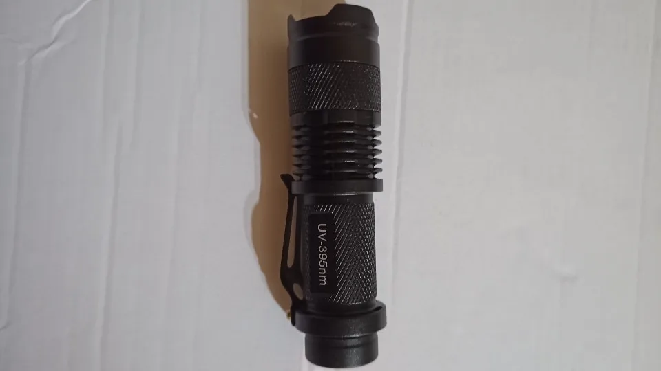 Маленький УФ фонарик без батарейки в комплекте. достаточно грубо сделанный, но работает