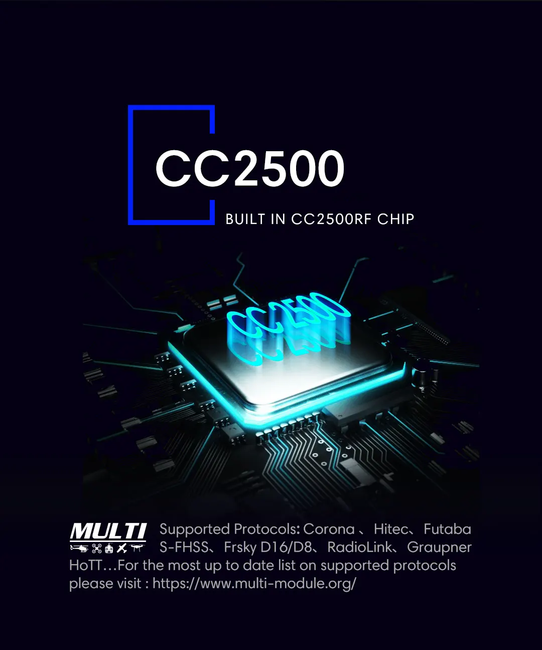 Размер: 170*159*108 ммВес: 363 гЧастота: 2,400 ГГц-2,480 ГГцРЧ-чип: одноchip multi-протокол (CC2500)Поддерживаемые протоколы: Corona, Hitec, Futaba S-FHSS, Frsky D16/D8, RadioLink, Graupner HoTTМощность передачи: 20 дБмКоэффициент усиления антенны: 2 дБРабочий ток: 160mA@8.4VНапряжение диапазон: 6,6-8,4 v DCДиапазон: > 2 км @ 20 дБм (в зависимости от приемника)Радио Прошивка: OpenTX (передатчик)/мульти-модуль (RF модуль)Каналы: до 16 (в зависимости от приемника)Дисплей: 128*64 Монохромный ЖК-дисплейКарданный шарнир: высокоточные гимбалы потенциометраВнешний модуль: Совместимость JR/FrSKY/CrossfireСпособ обновления: USB/sd-карта * и OpenTX Companion PC программное обеспечение* Sd-карта не входит в комплект.