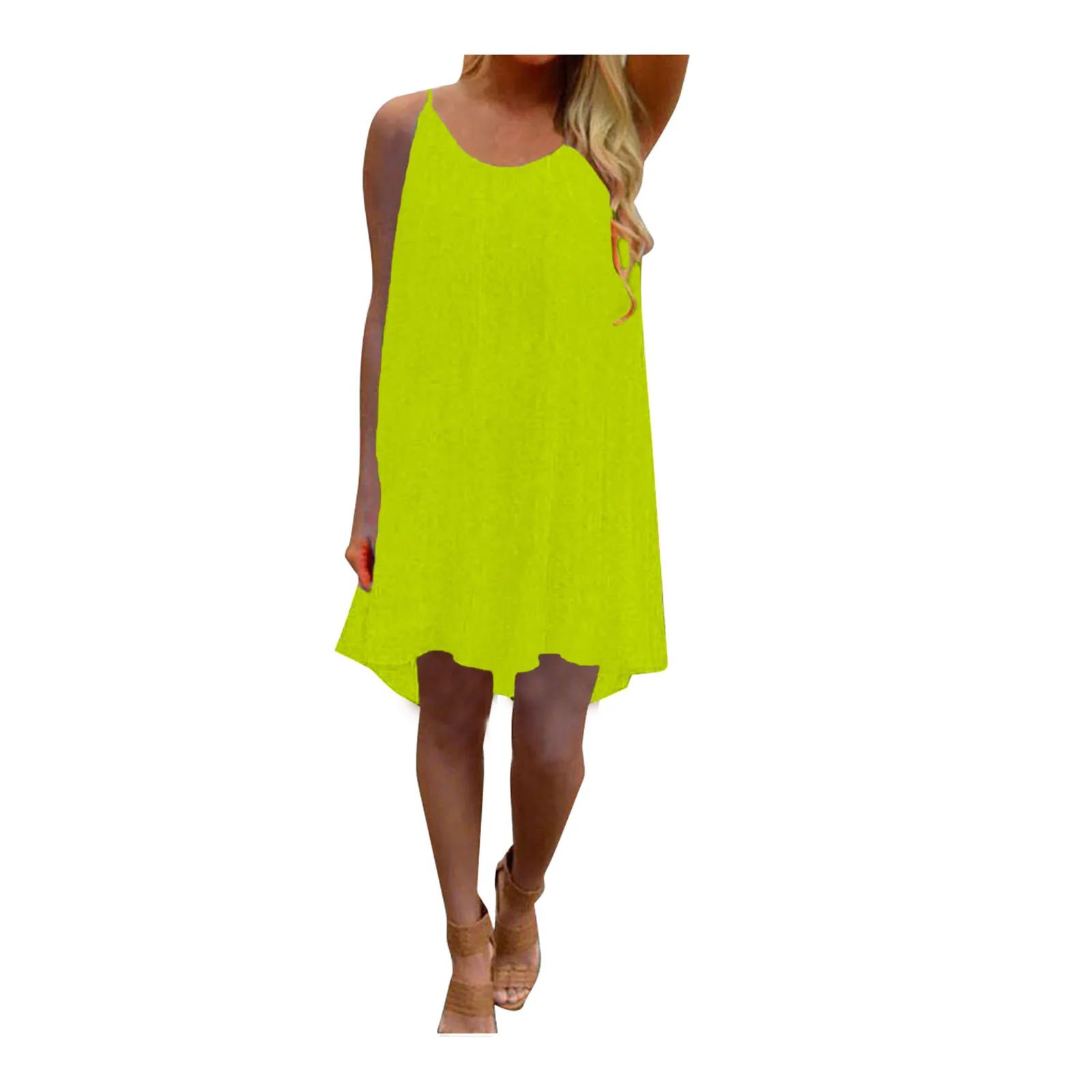 4 # платья для женщин 2021 с открытыми плечами Спагетти ремень полые шифоновое пляжное короткое платье; детское летнее Платье без рукавов с круглым вырезом Платье 2021 Платье
