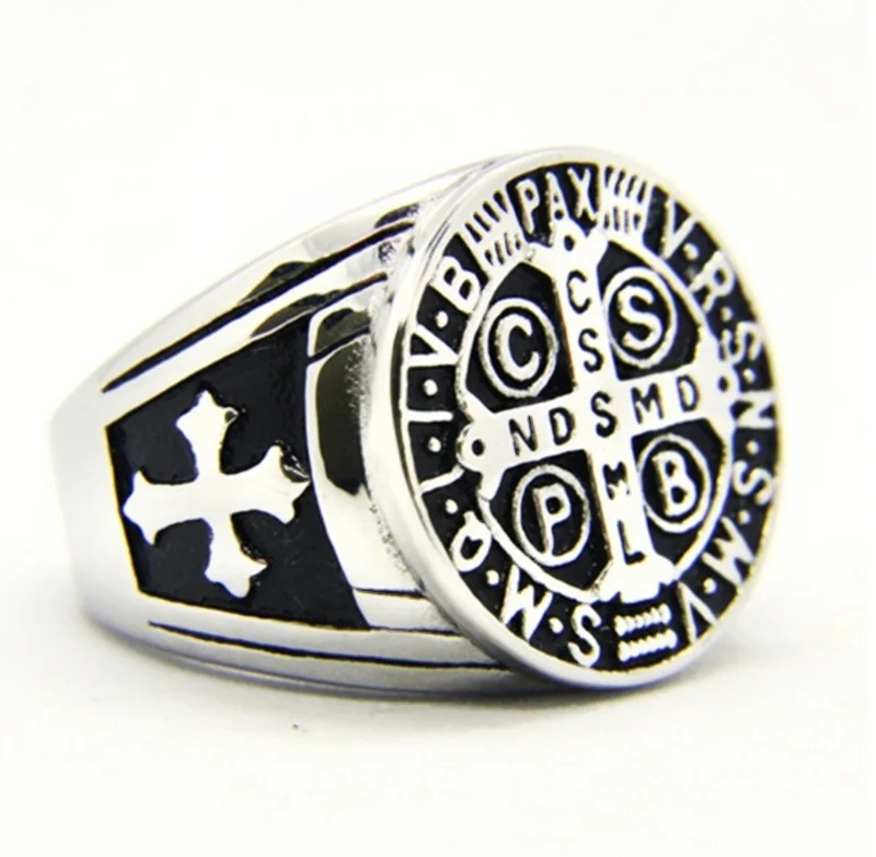 Мужское кольцо для христианского экзорцизма, последняя модель католической церкви, нурсии, Святого Бенедикта, ювелирные изделия, Размеры 7-14