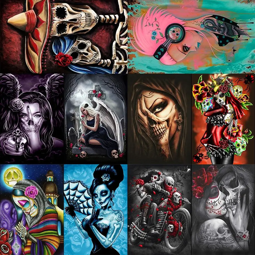 Алмазная живопись, череп, винтажный набор искусств и ремесел, алмаз...