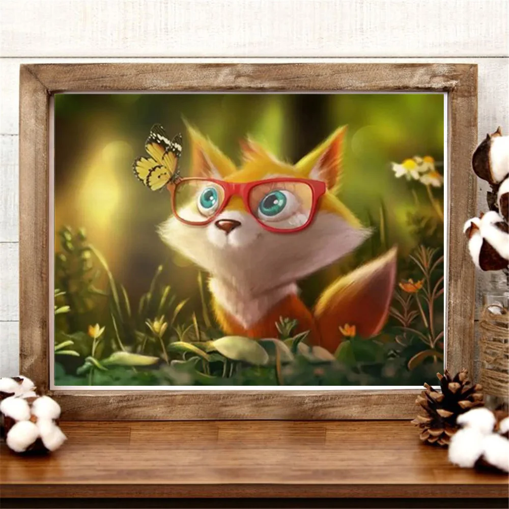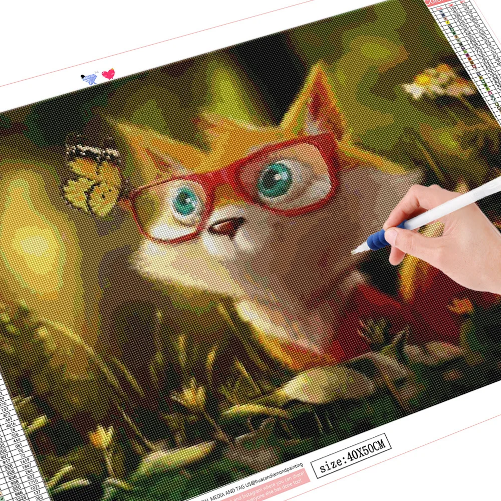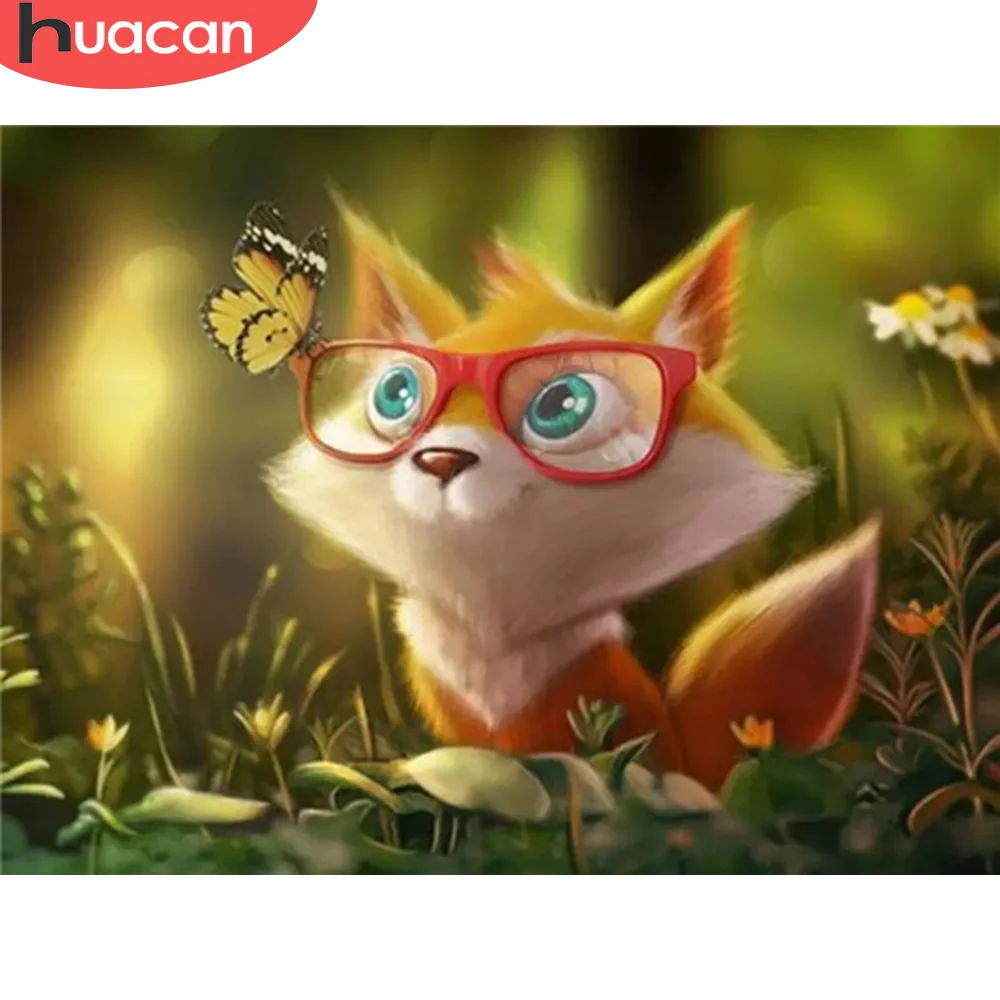 Алмазная живопись HUACAN 5D, лиса, стразы, искусство, алмазная вышивка, животное, вышивка крестом, ручная работа, хобби, подарок, домашний декор