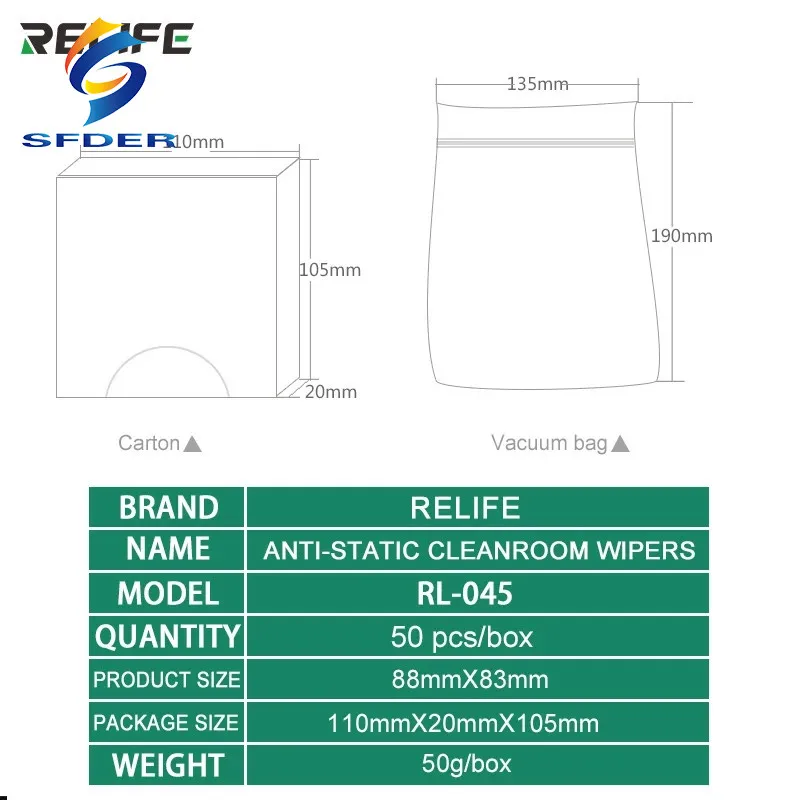 Антистатические салфетки Relife RL-045 для чистых помещений, тканевый рисунок, вакуумная упаковка для экрана телефона, материнской платы, инструмент для очистки, 50 шт.