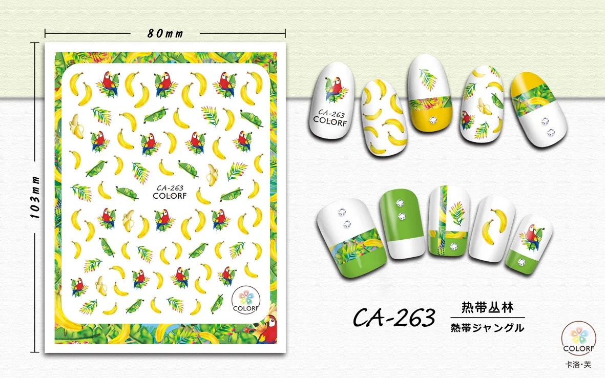 Мультяшные наклейки для дизайна ногтей животные Флора фрукты волны линии геометрическое пространство маникюрные украшения слайдер наклейки для ногтей WG016