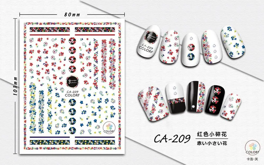 Японский стикер для дизайна ногтей с задним клеем 3D украшение для маникюра свежий цветок Мультяшные животные геометрический дизайн ногтей Обертывания WG016