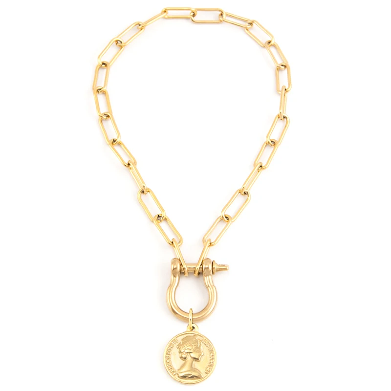 Женское винтажное ожерелье с подвеской в виде монеты из нержавеющей стали