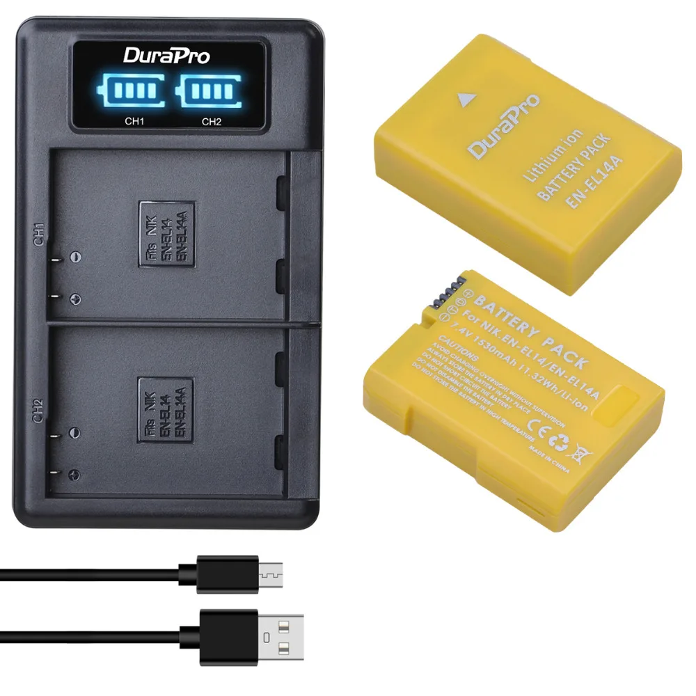 2 шт., 1530 мАч, EN-EL14a EN-EL14, Сменное зарядное устройство для Nikon D5600,D5500,D5300,D5200,D5100,D3200,D3300,P7800,P7100