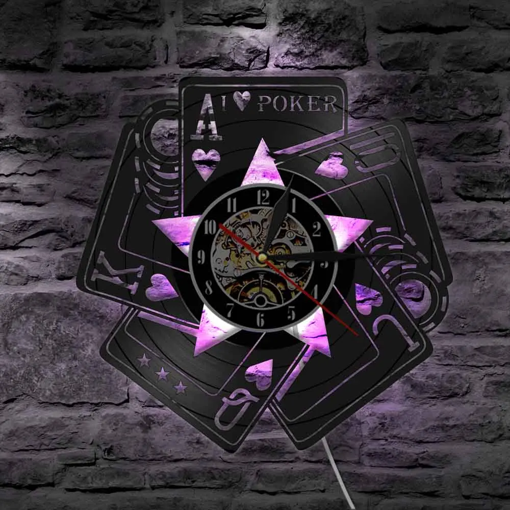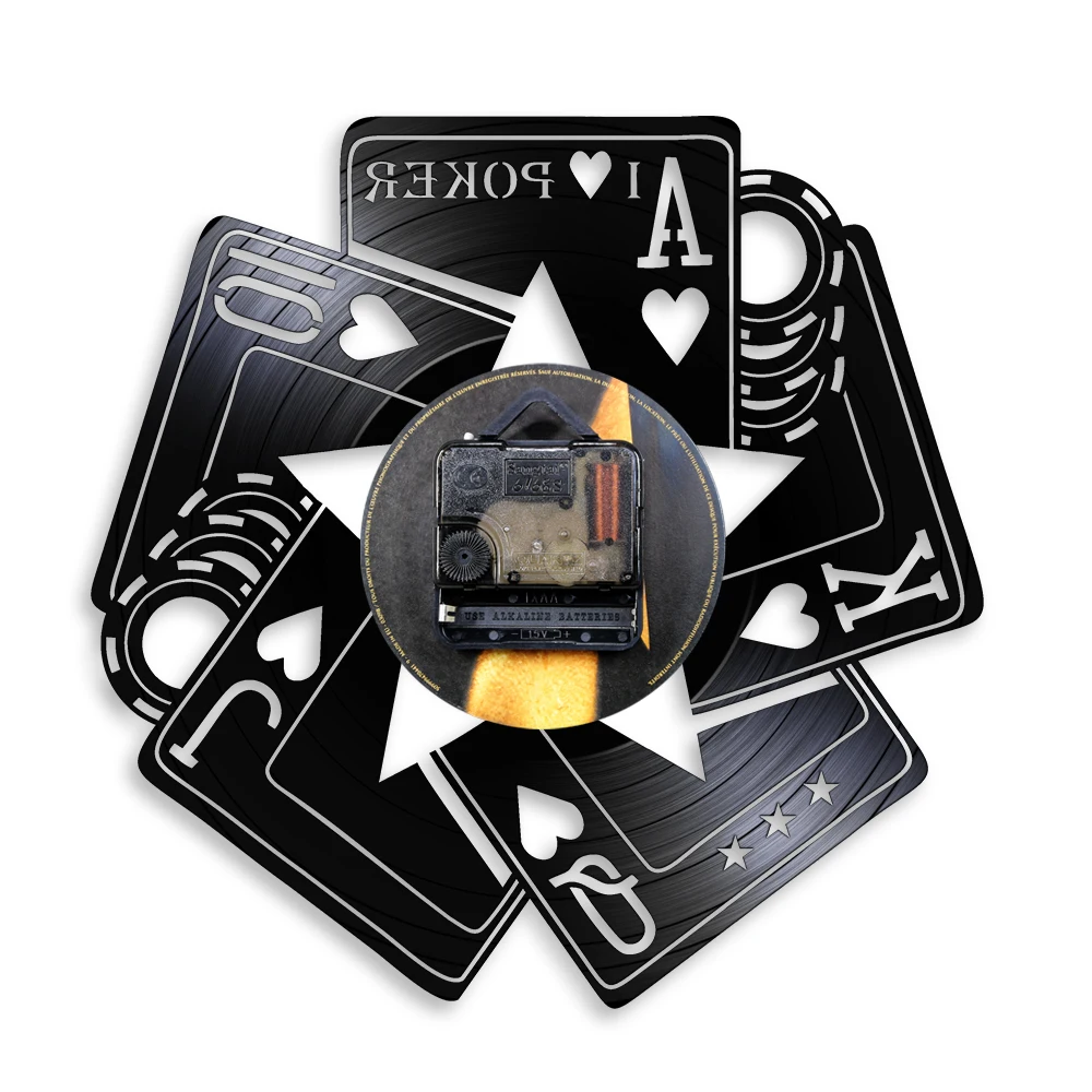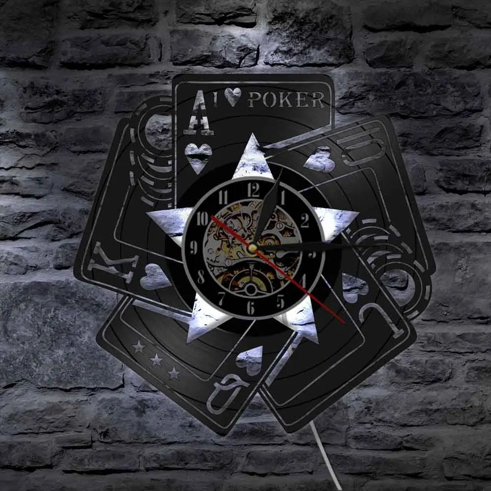 С надписью I Love покер карты игра Роял-лопаты азартные игры номер Декор настенные часы в стиле Лас-Вегаса с изображением казино геймера победитель Виниловая пластинка настенные часы