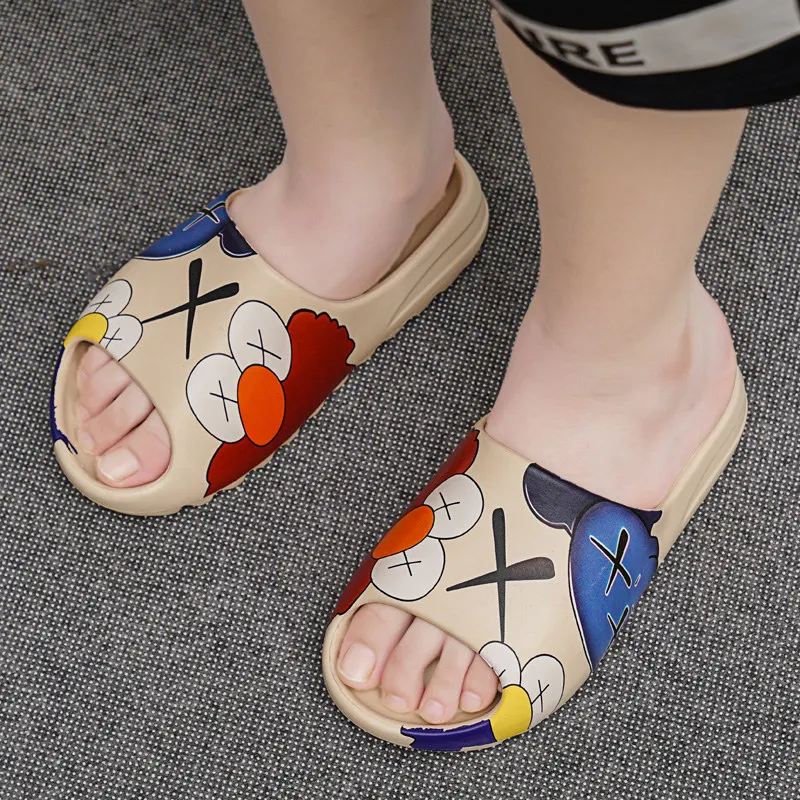 Сланцы для мужчин и женщин, мультяшный рисунок граффити, модные резиновые шлепанцы, Повседневная Уличная обувь на платформе, с открытым носком, летние