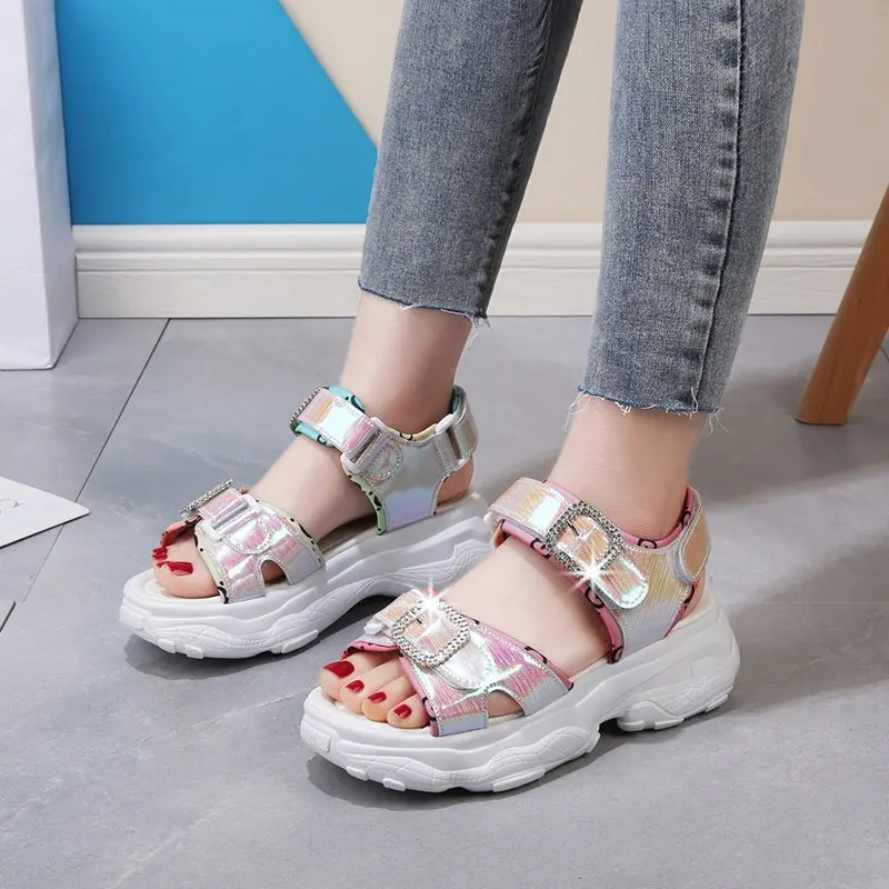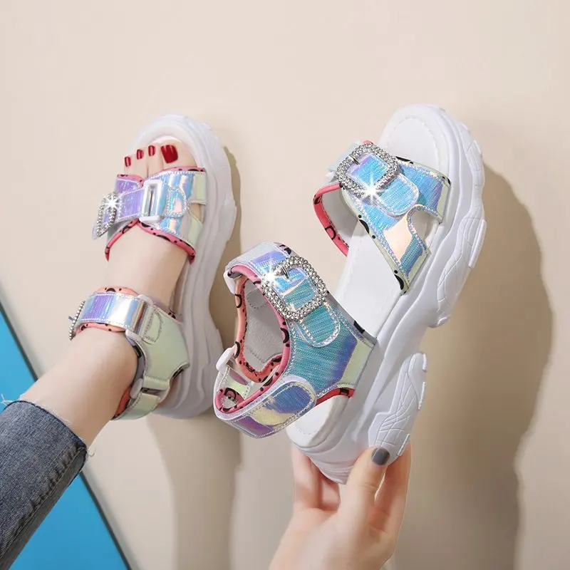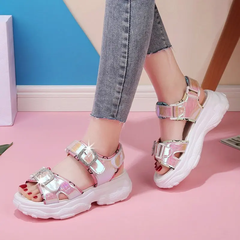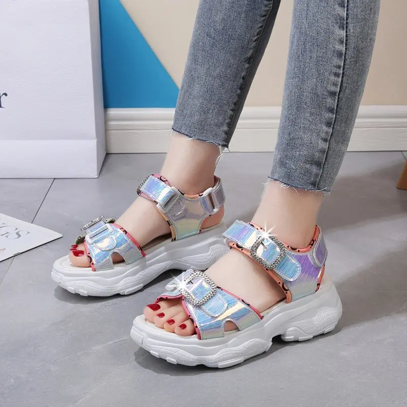 Сандалии женские массивные на платформе, босоножки на танкетке, туфли на высоком каблуке, повседневные спортивные босоножки на платформе, с пряжками, лето 2021