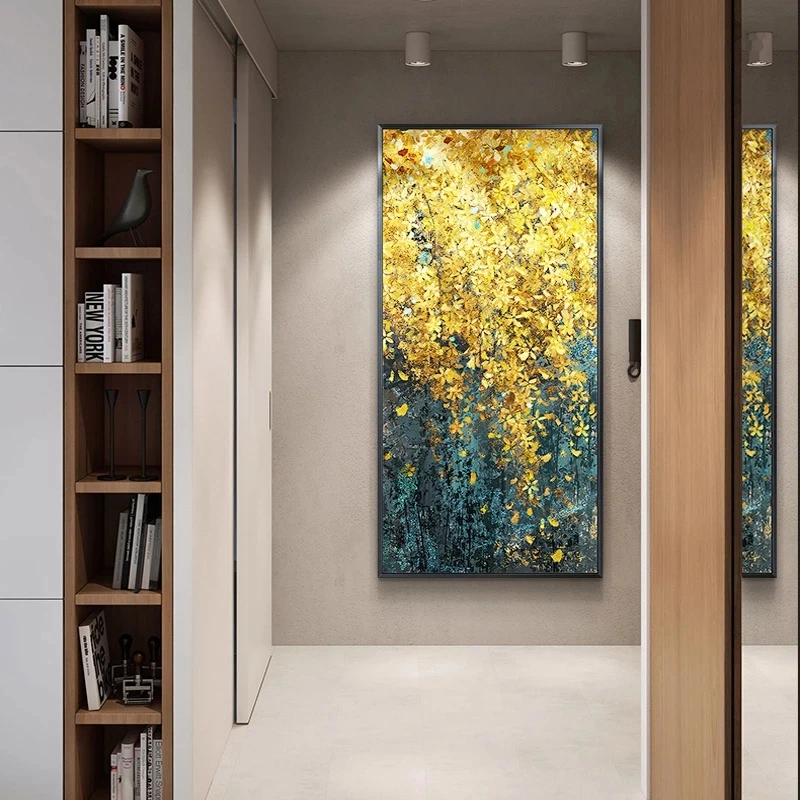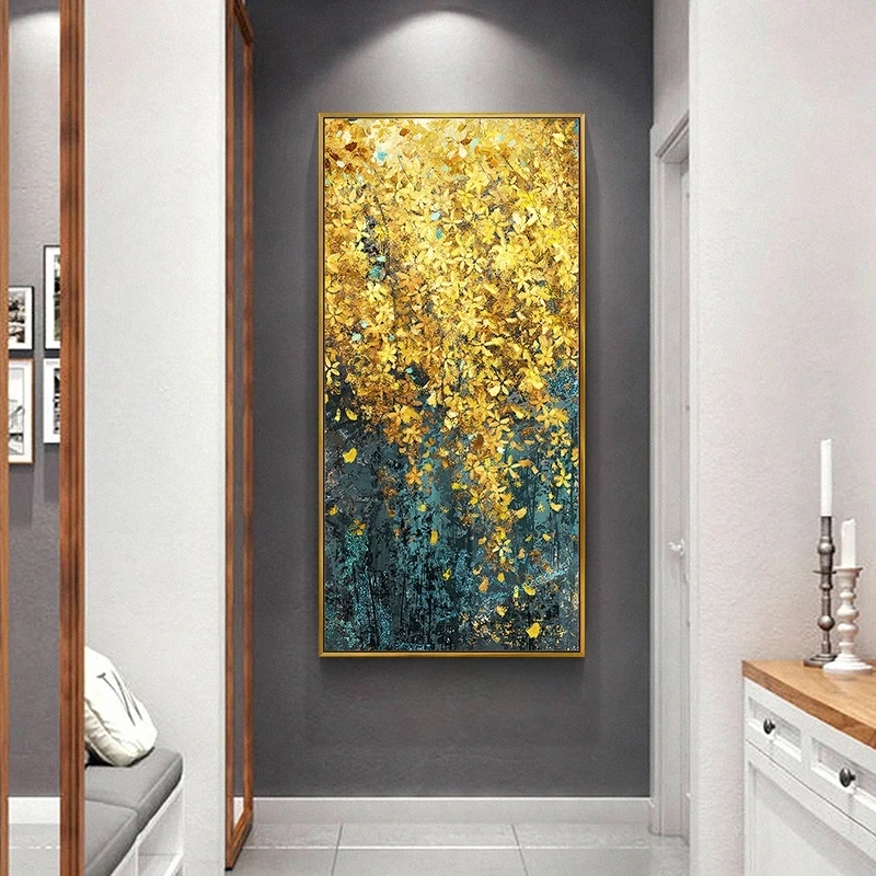 Холст с изображением золотых листьев, современные абстрактные посте...