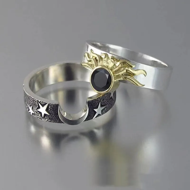 Новинка, лидер продаж, набор из 2 шт.1 комплекта, ювелирные украшения для вечерние ринки в виде Солнца и Луны, свадебные браслеты для него и ее юбилея, Подарок на годовщину