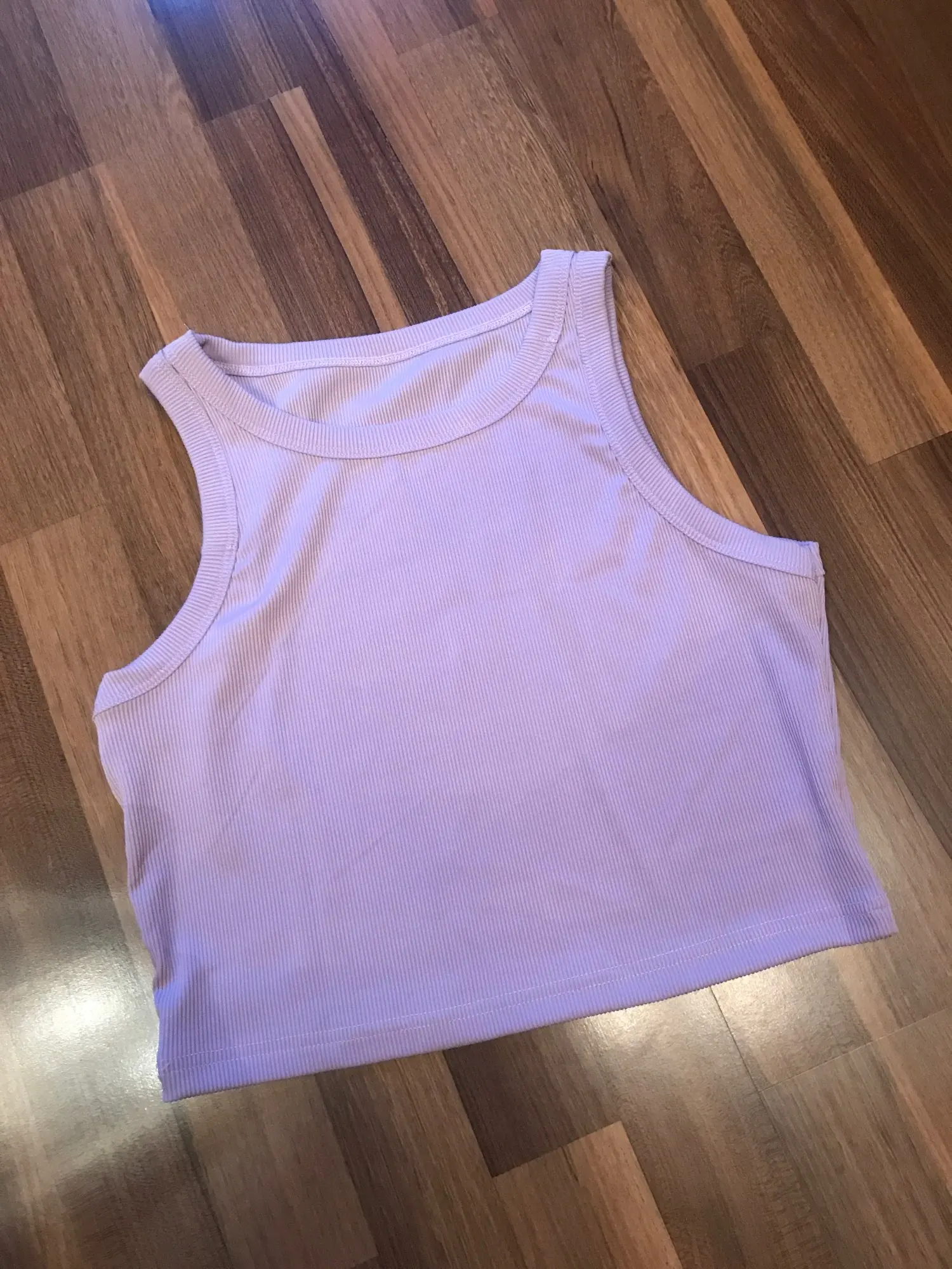 Очень милый топ, цвет приятный. Ткань синтетика, но к телу приятная. Размер М подошёл на ОГ-88. Сам топ короткий, но с джинсами или с юбками с высокой талией смотрится отлично.