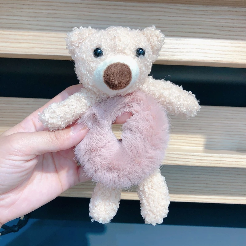 Пушистые резинки из искусственного меха для женщин и девочек, милые Мультяшные 3D резинки для волос с мишкой Тедди, эластичные резинки для волос, завязки с помпоном, держатель для хвоста, волосы M6CD