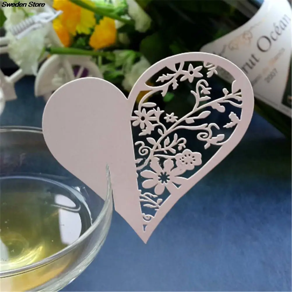 50 шт.компл. свадебное украшение стола Место открытки Лазерная резка птица сердце цветочный бокал место открытки Вечерние