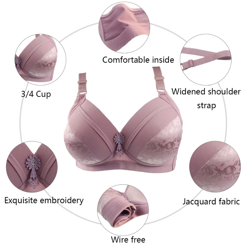 Бюстгальтер женский с чашками пуш-ап, тонкая чашка без косточек, пи...