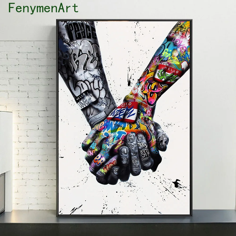 Холст с изображением граффити руки за рукой, абстрактные постеры и принты, уличное искусство, Настенная картина для домашнего декора гостиной