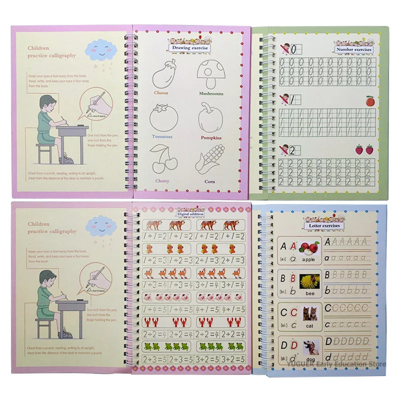 4 книгикомплекты детских книг и выгодно отличается от обычных однотонных вещей 3d каллиграфии многоразовые написание практики английский письменной форме Magic канцелярских принадлежностей