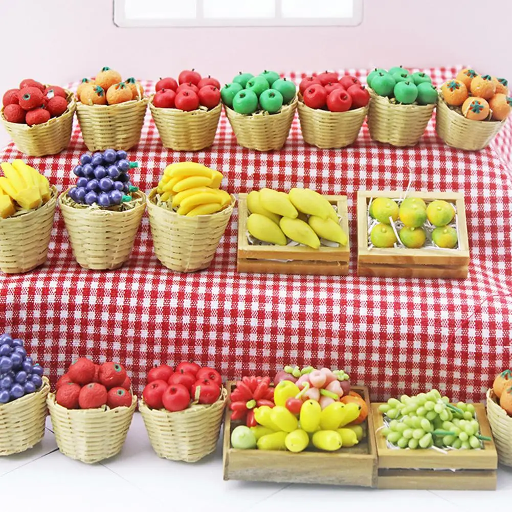 1:12 Миниатюрный Кукольный 3d-домик, мебель из смолы, Реалистичная корзина для яблок и апельсинов, фигурка, миниатюрный кукольный домик, аксессуары, детская игрушка