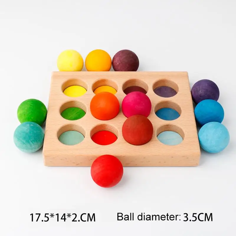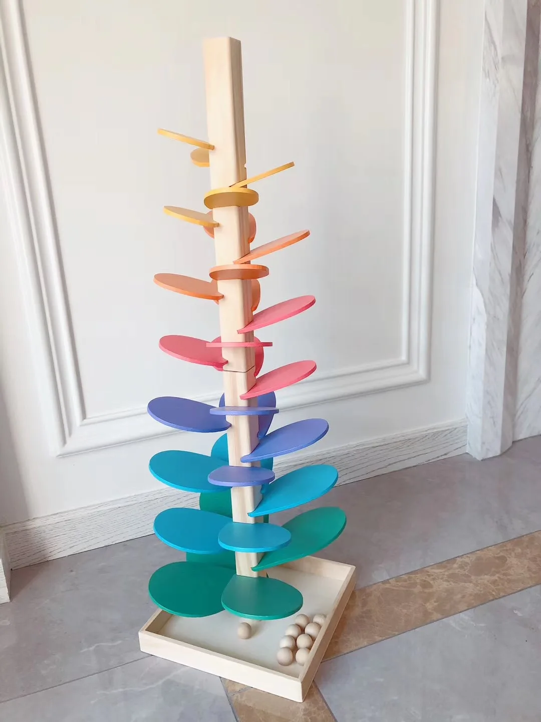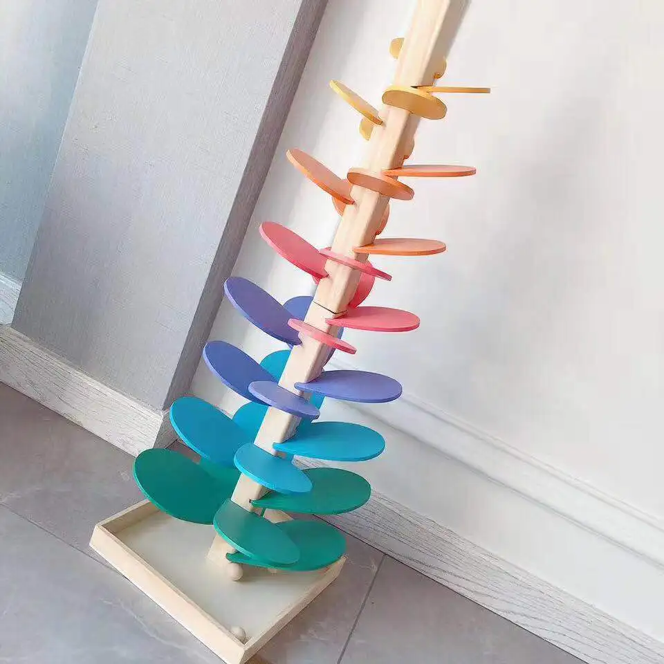 Деревянный шар, трасса, сборные строительные блоки, лепесток дерева, лист, башня, игрушка, Монтессори, Радужный шар, образовательная игра сделай сам для детей