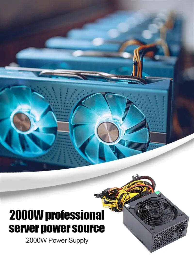 1800W блок питания ATX ETH врубовая машина Питание 160V-240V Вход Многоканальная система Поддержка 8 Дисплей карты GPU для майнера биткоинов