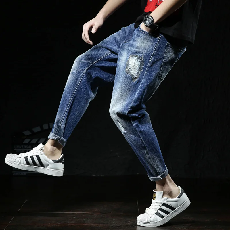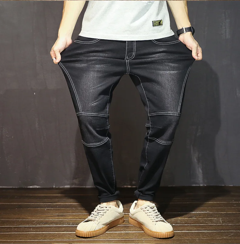 Джинсы мужские стрейчевые, брюки-султанки из денима, черные эластичные синие джинсы, большие размеры 5XL 6XL 7XL, 44 размер 44 46 48, на осень