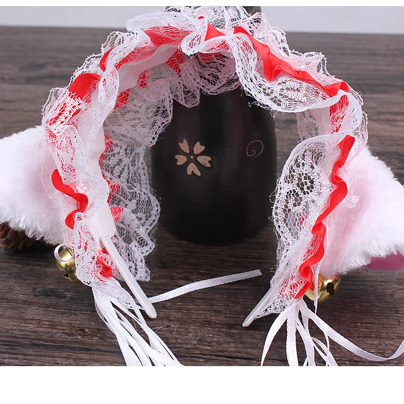 Кружевной обруч с кошачьими ушками и колокольчиком в японском стиле...