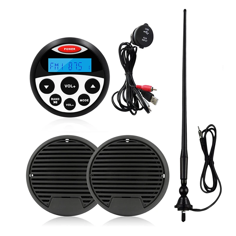 Морская стереосистема, лодочное радио, аудио, Bluetooth, медиа-ресивер + 3 "морской водонепроницаемый динамик + антенна AM FM + USB-кабель для лодки
