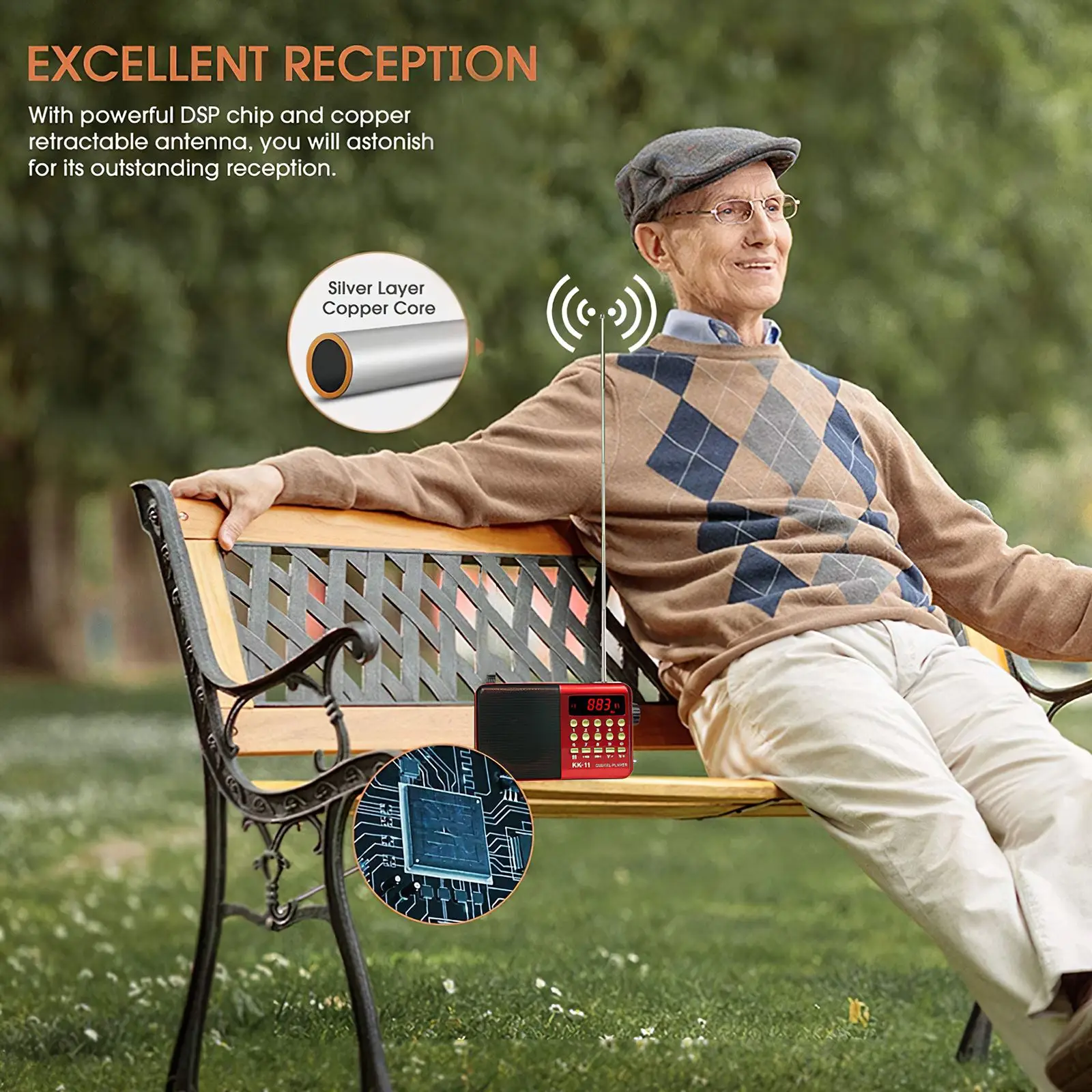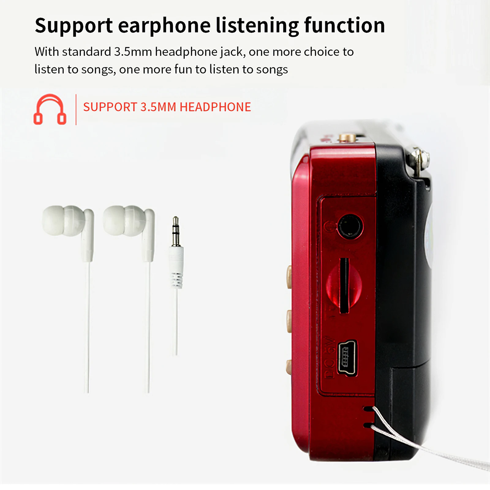 С небольшим размером и многофункциональностью, идеально подходит для пожилых людей, чтобы использовать в утренней ходьбе или слушать радио музыки дома, подходит как для внутреннего, так и для наружного использования.