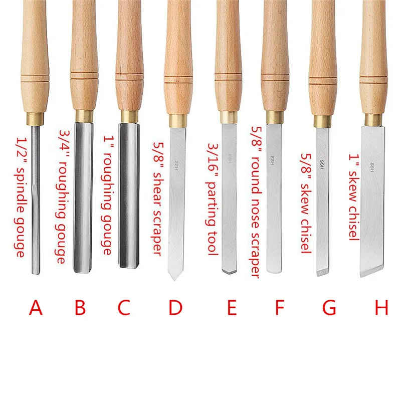 Материал лезвия Высокоскоростная сталь Использование Деревообработка Длина лезвия 170 мм Длина ручки 250 мм Тип A = 1/2 "шпиндель gouge B = 3/4 ''Черновая выгула C = 1 "Черновая выгула D = 5/8 "ножницы царапины