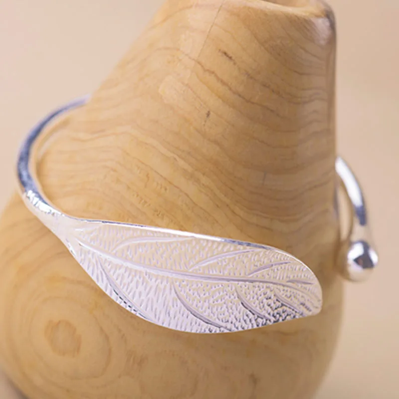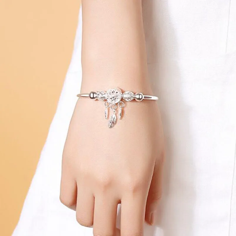 Очаровательный посеребренный браслет Ловец снов с перьями и листьями Браслет-манжета для женщин Регулируемая медная Свадебная Бижутерия Подарки