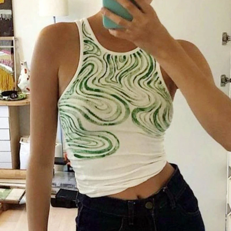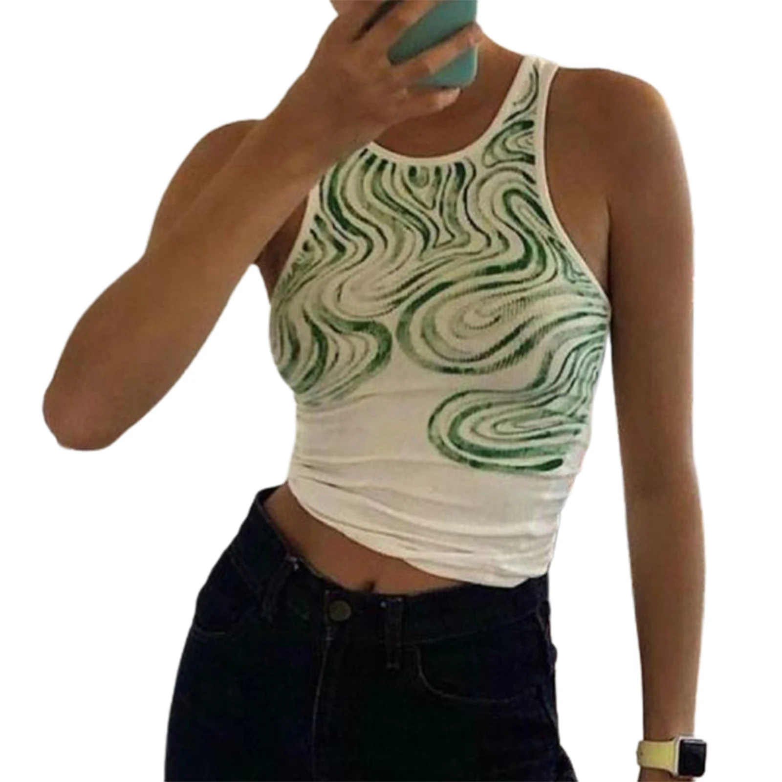 Женские укороченные майки без рукавов в стиле ретро y2k с изогнутыми полосками, летние женские повседневные трикотажные майки, топы