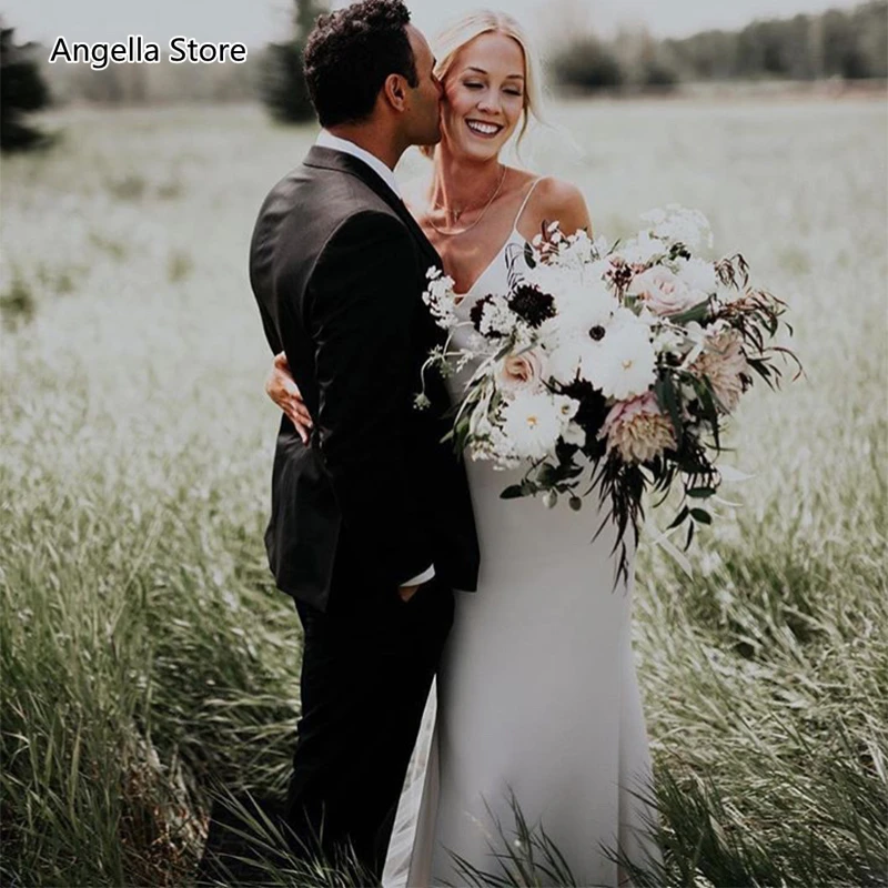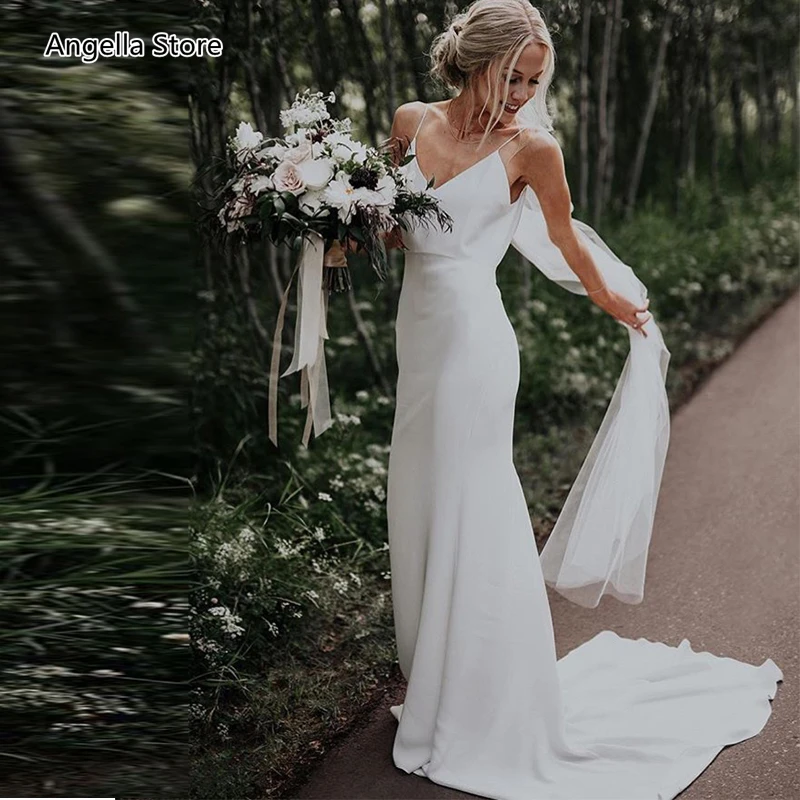 2021 летнее платье в стиле бохо, свадебное платье, сексуальным вырезом на спине и бретельках длинное Белый сатинировка слоновой кости страна пляжные свадебные платья с длинным шлейфом