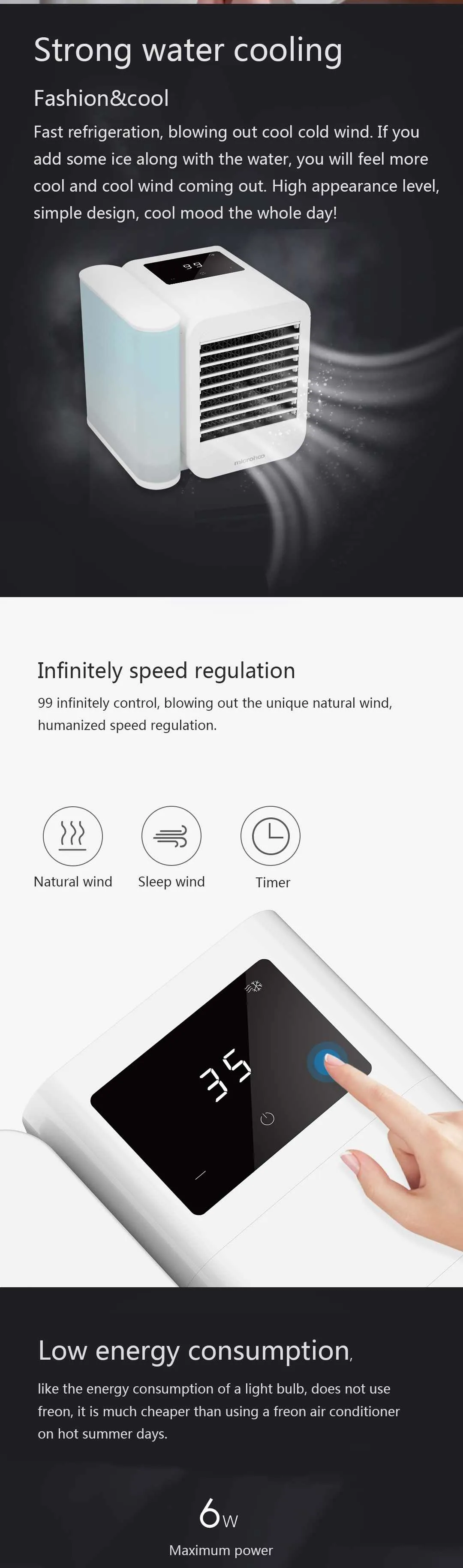 -Низкое энергопотребление, как и энергопотребление лампы-светильник, не использует фреон, это намного дешевле, чем использование кондиционера фреон в жаркие летние дни. Нет открытых лезвий, нет возможности навредить людям, и они полностью безопасны для использования детьми или домашними животными.