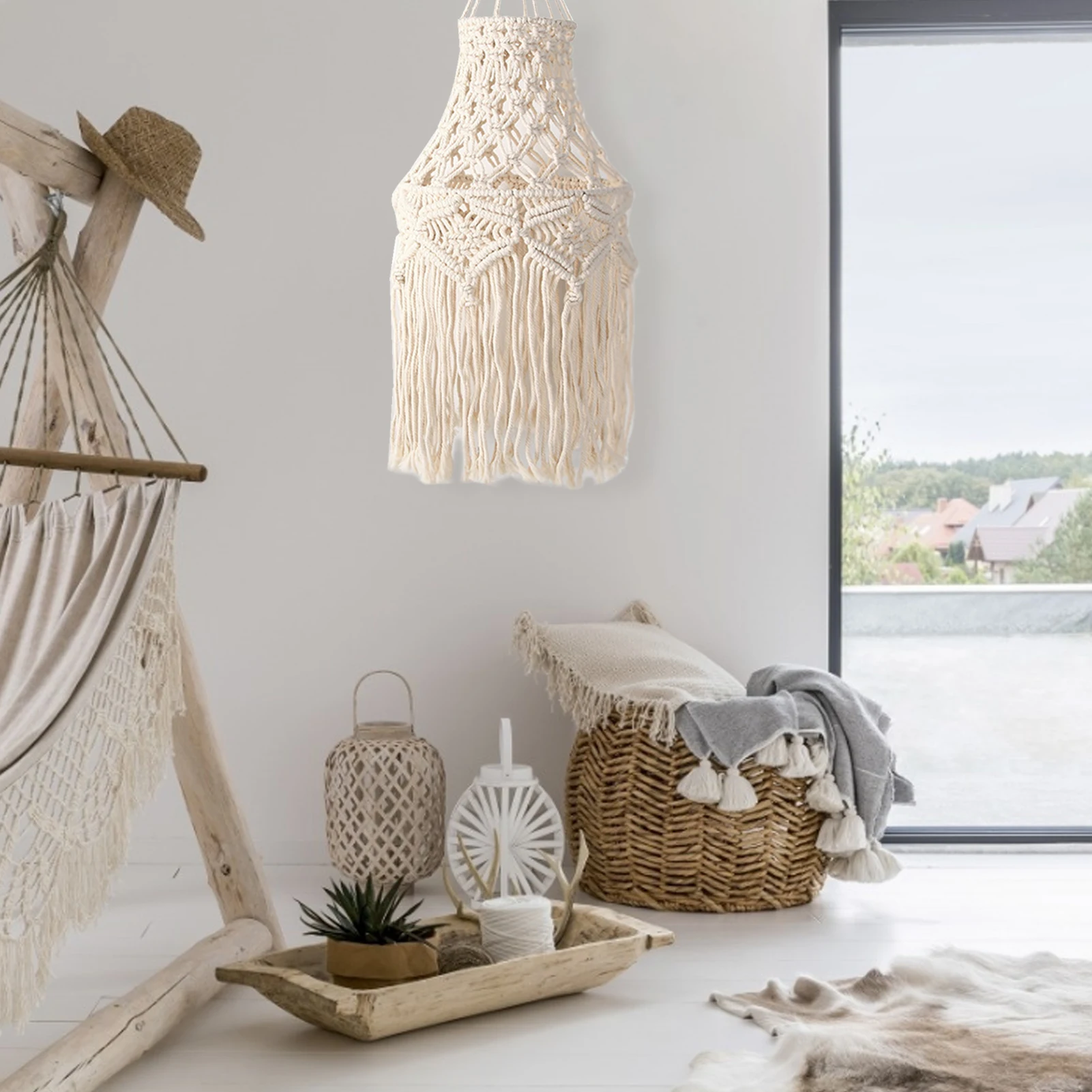 Абажур ручной вязки в богемном стиле, Подвесная лампа-макраме, укра...