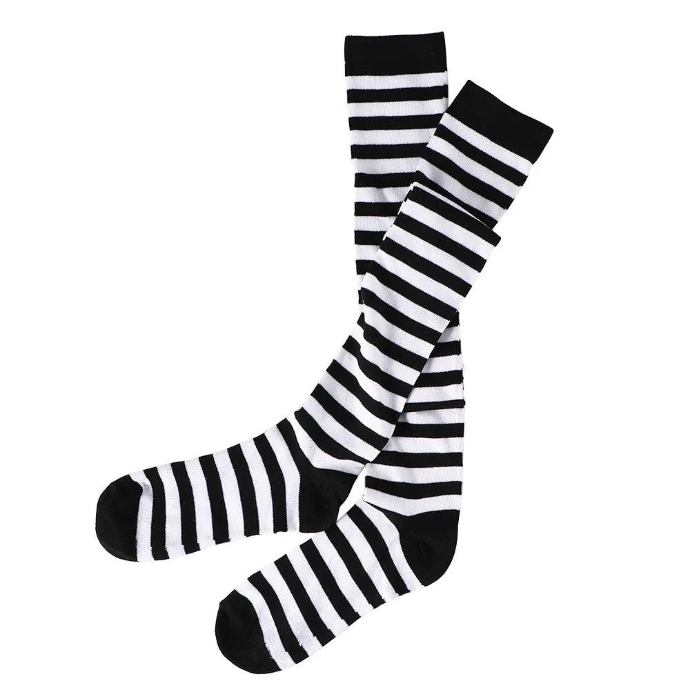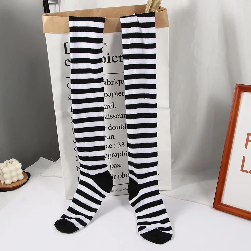 Гольфы женские, черные, белые, с принтом в полоску, хлопковые полосатые носки