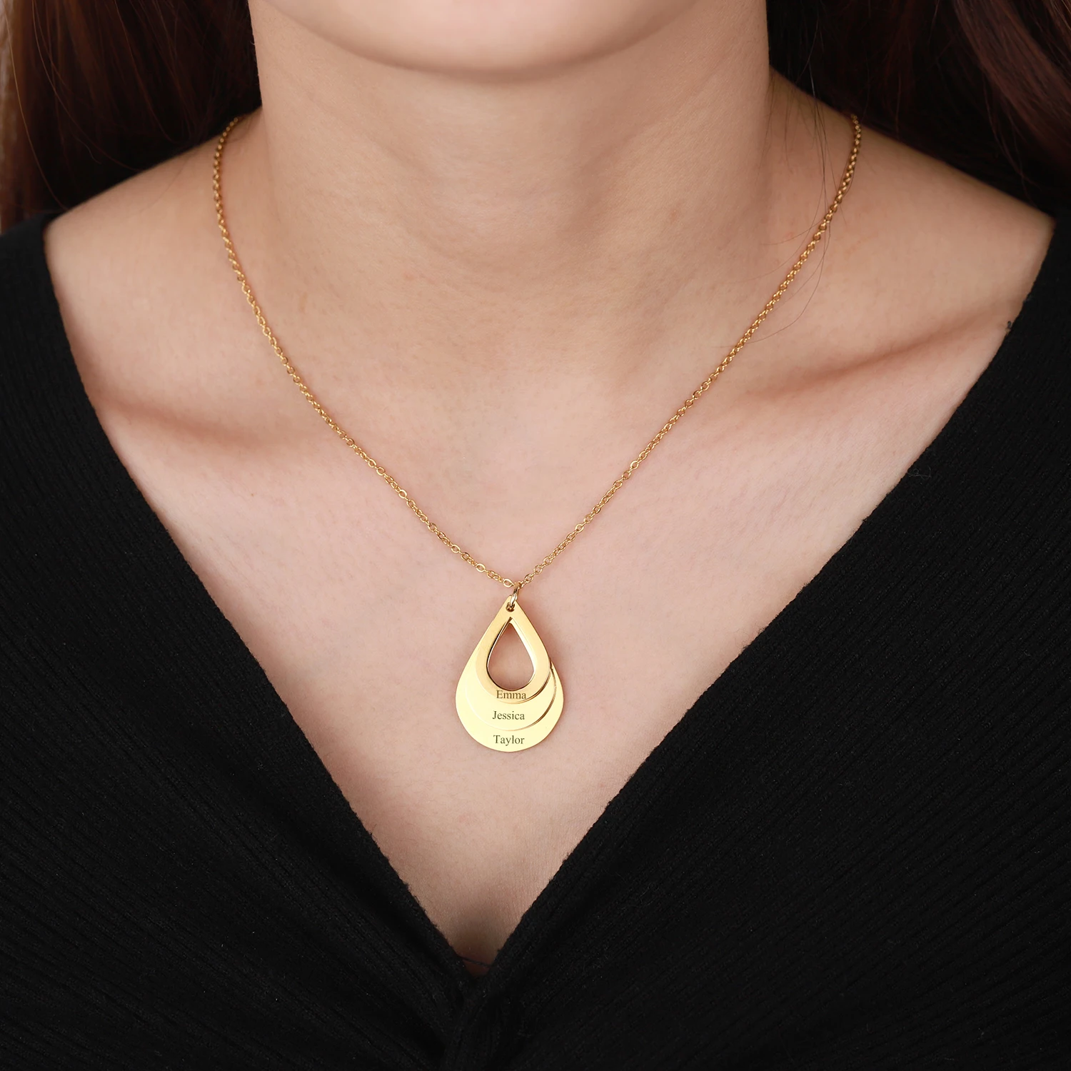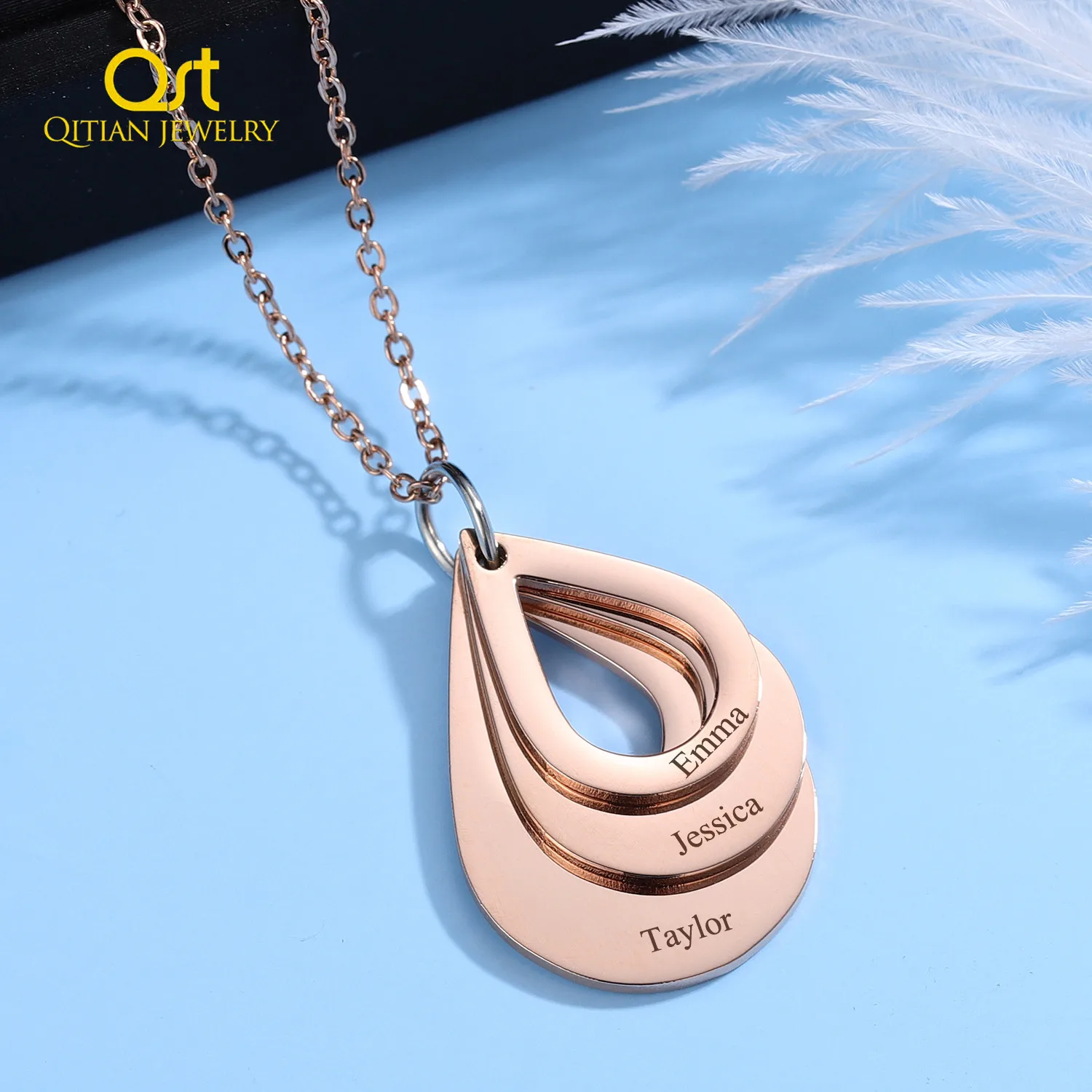 Ожерелья с именем на заказ, ожерелье с выгравированными 3 именами, Очаровательная форма капли воды, ювелирные изделия из нержавеющей стали, подарки для мамы