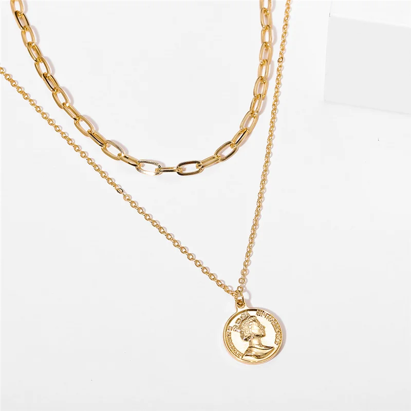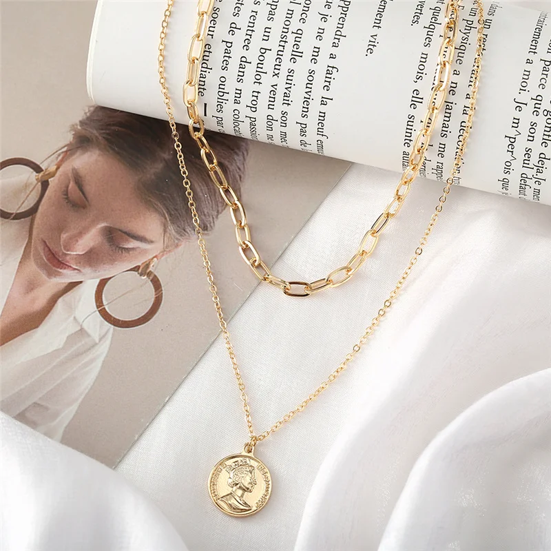 Женское многослойное ожерелье AWH, винтажное ожерелье золотистого и...