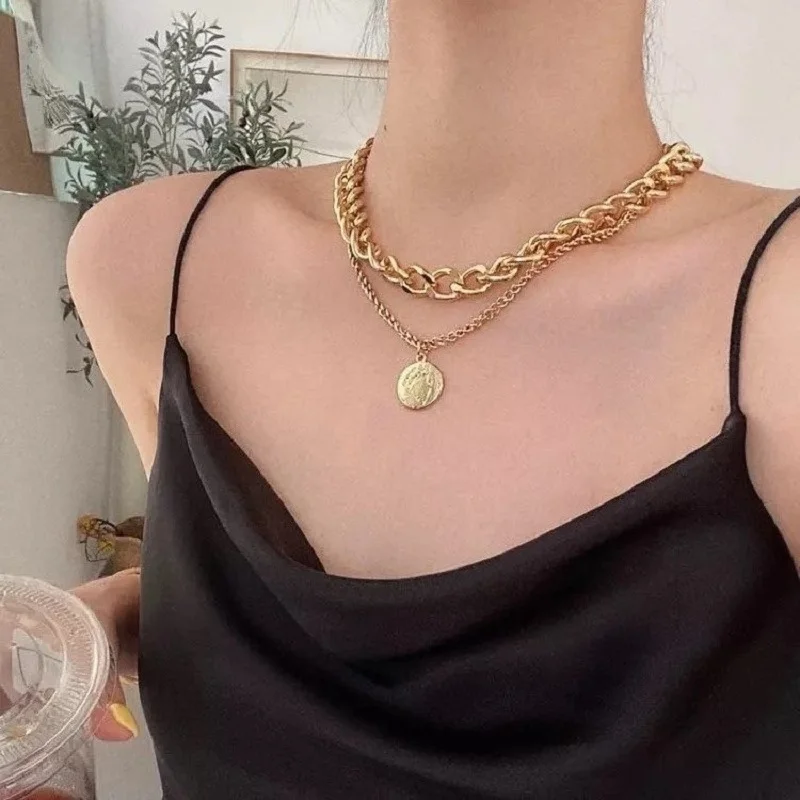 Модные цвета: золотистый, серебристый Цвет толстая цепь Многослойны...