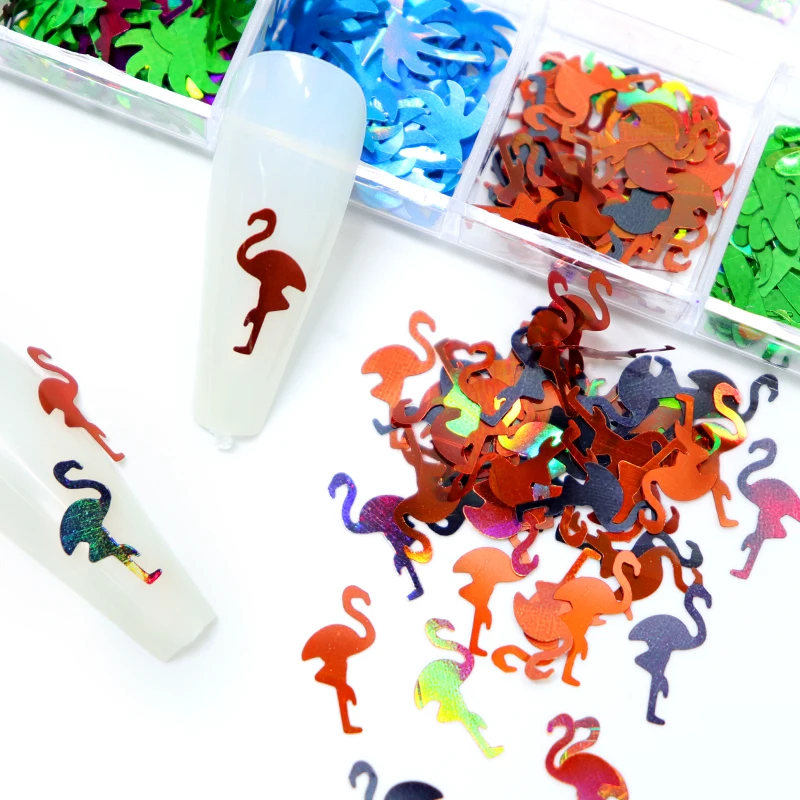 Голографический блеск с фламинго, блестки для ногтей, пальма, какту...