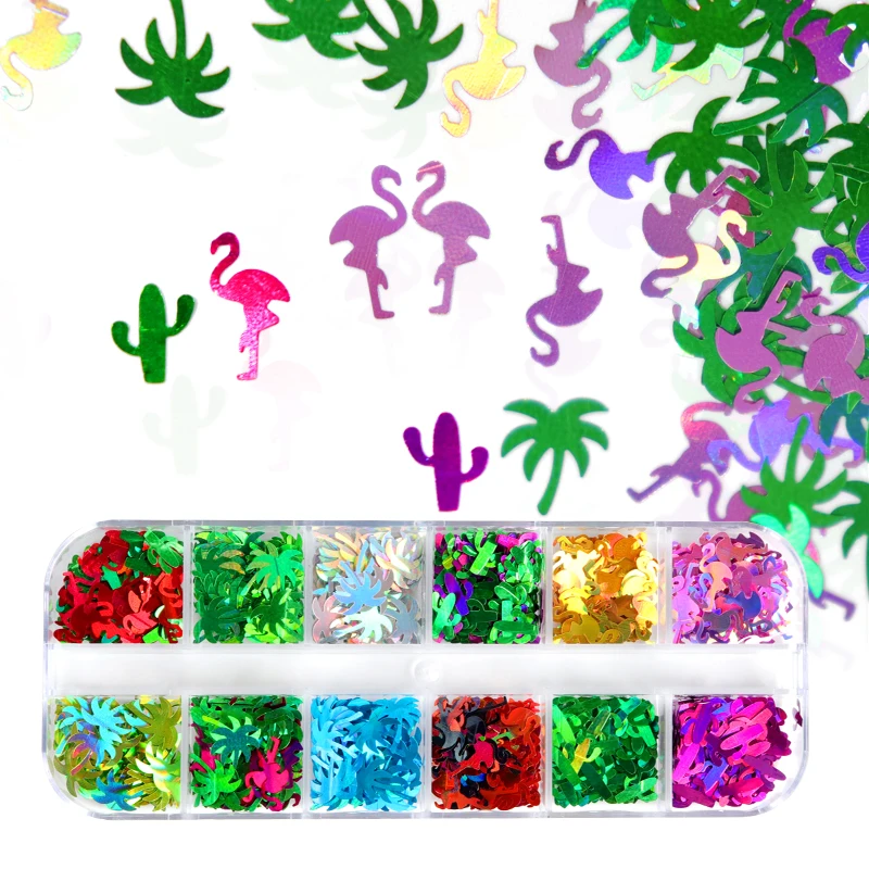 Пайетки с фламинго и пальмами для дизайна ногтей, тема джунглей, зеленое кокосовое дерево, кактус, голографические блестящие хлопья, украшения для дизайна ногтей
