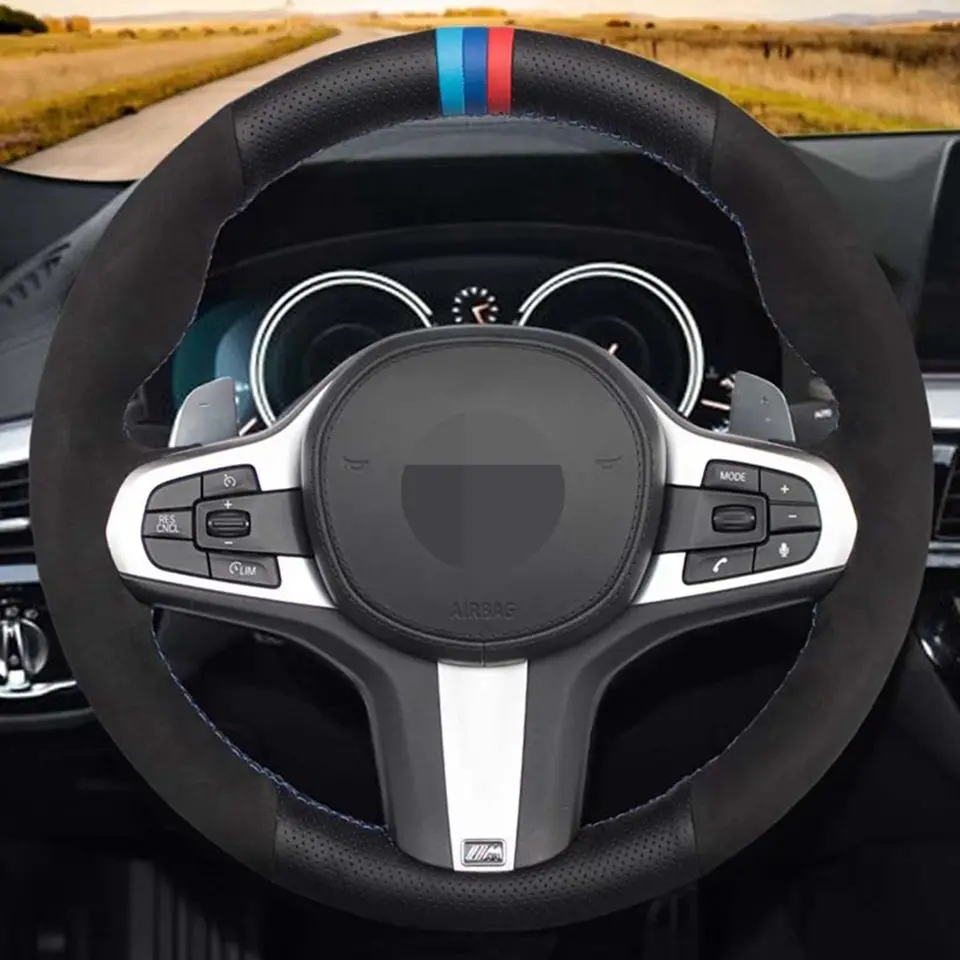 DIY черная замша чехол рулевого колеса автомобиля для BMW M Sport 3...