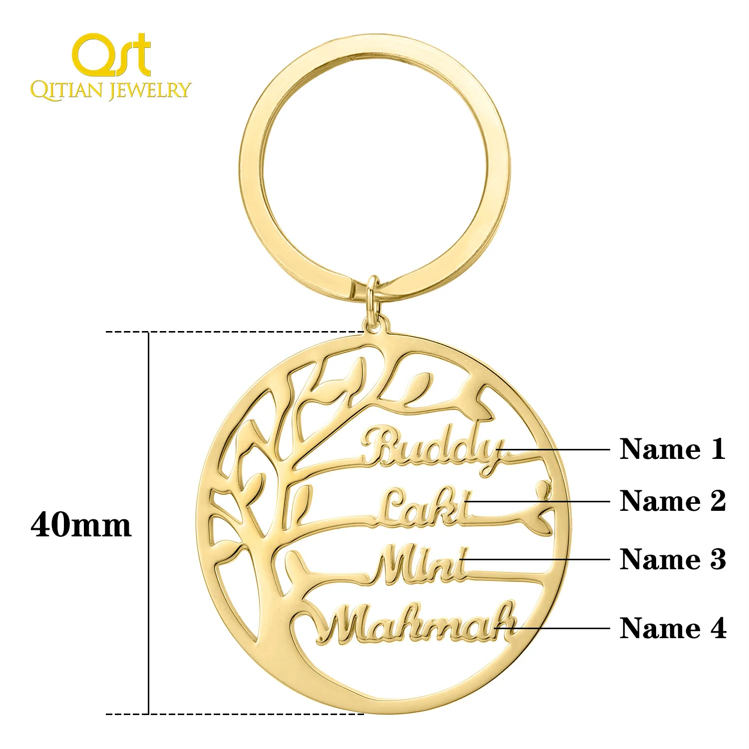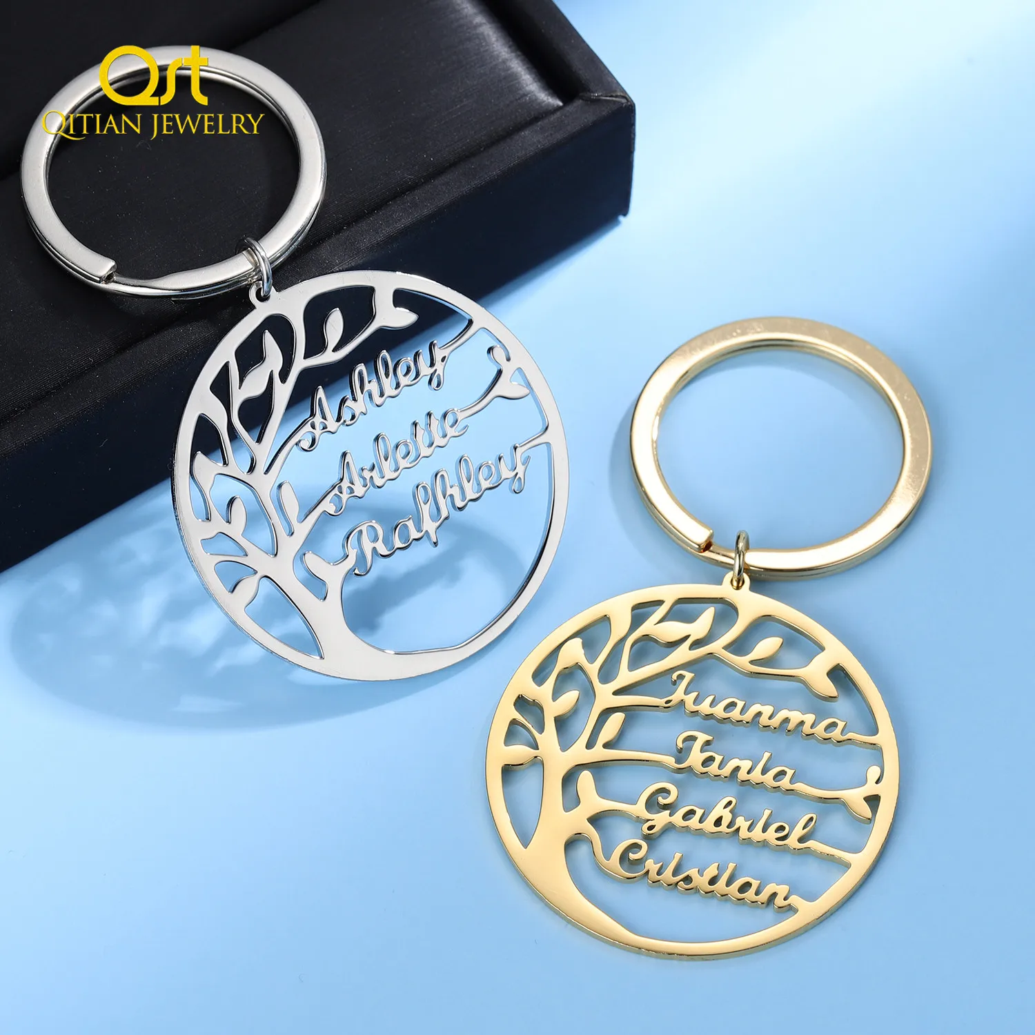 Персонализированный брелок в виде семейного дерева для мужчин и женщин, из нержавеющей стали с именем под заказ, с золотой табличкой, для мужчин и женщин, Подарочные ювелирные изделия